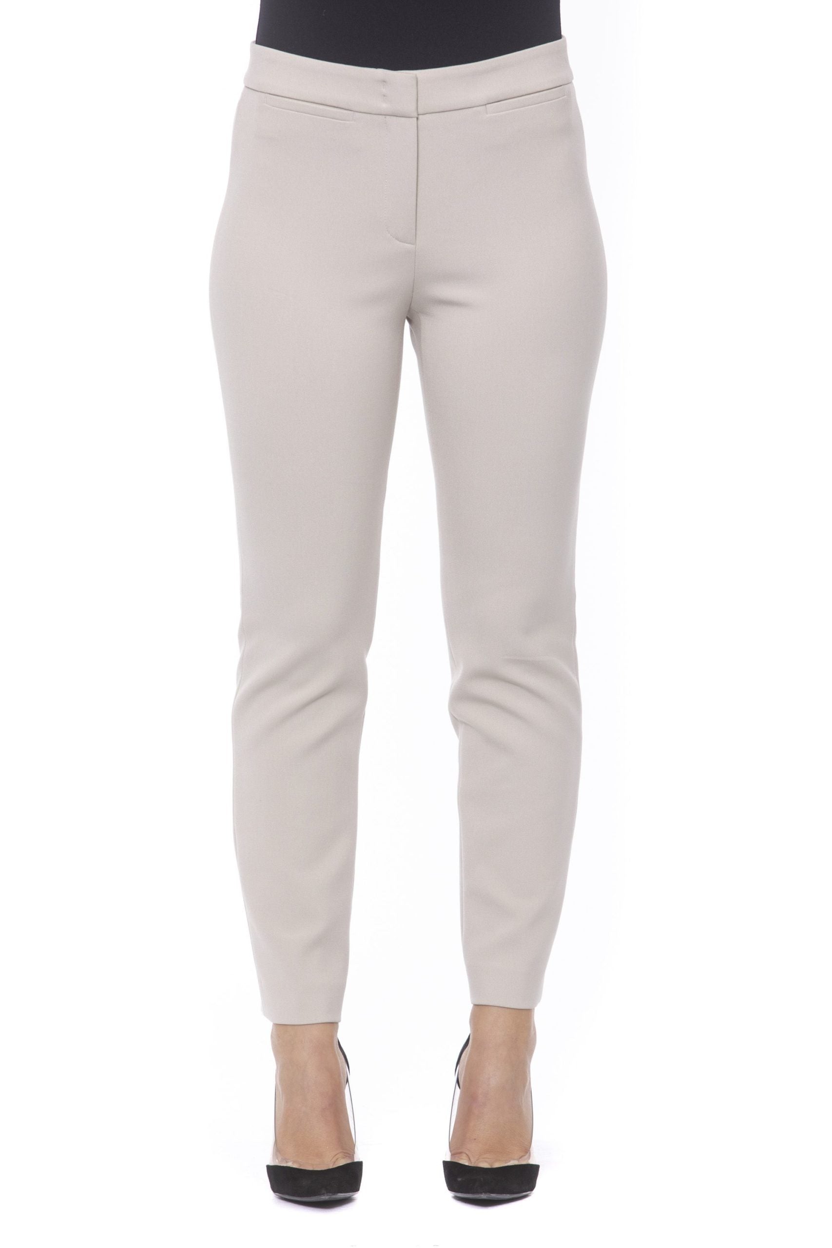 Hose aus Gabardine mit Gummizug. Leicht erhöhte Taille. Rückwärtige Fadentaschen. Verschluss mit Reißverschluss und Knöpfen. Angenehme Passform.