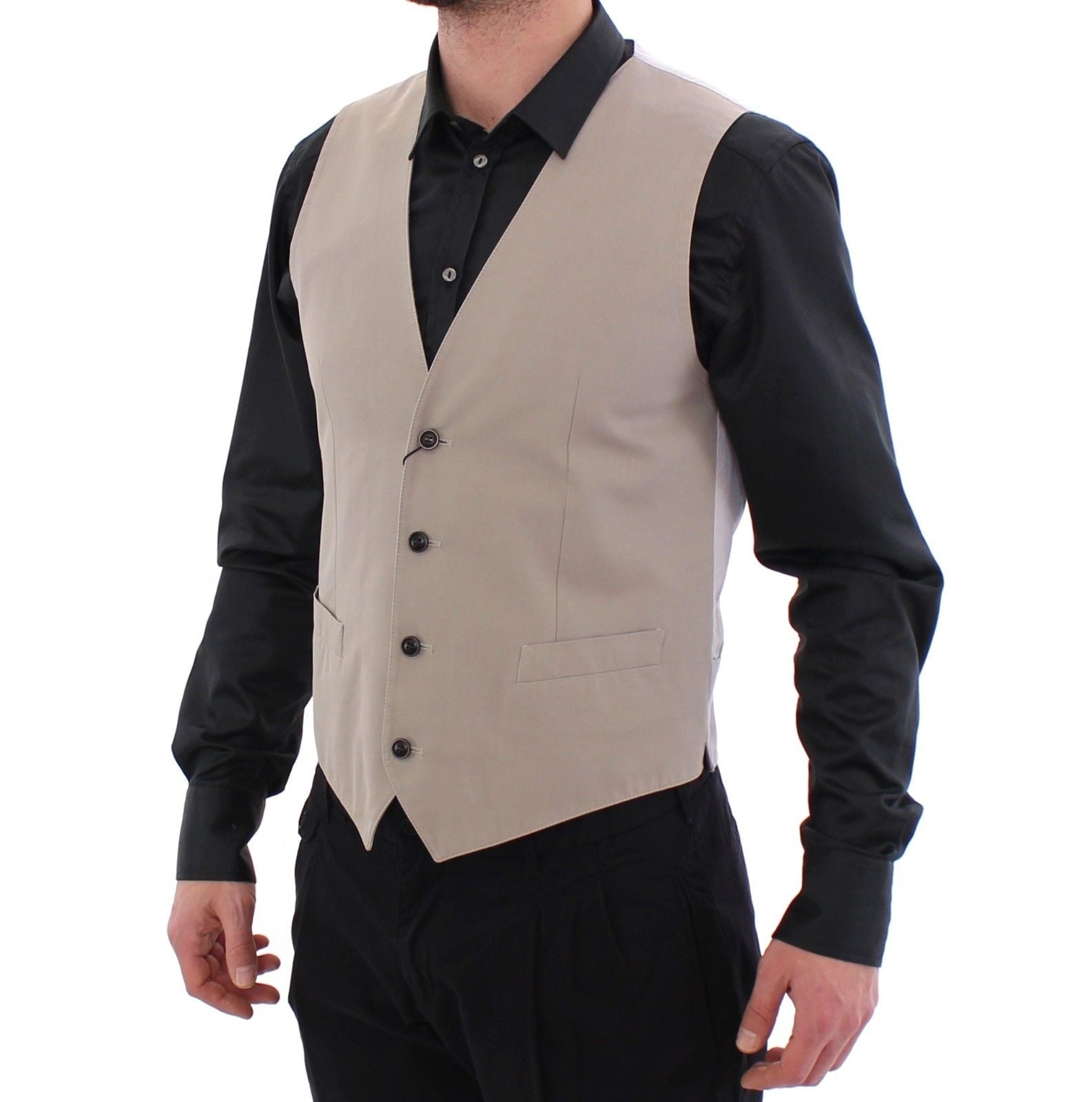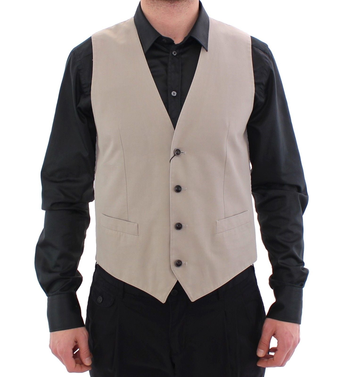 Absolut atemberaubend, 100% authentisch, ganz neu mit Tags Dolce & Gabbana Beige Seide Baumwolle Mischung Kleid Weste. Dieser Artikel stammt aus der MainLine Dolce & Gabbana Kollektion.