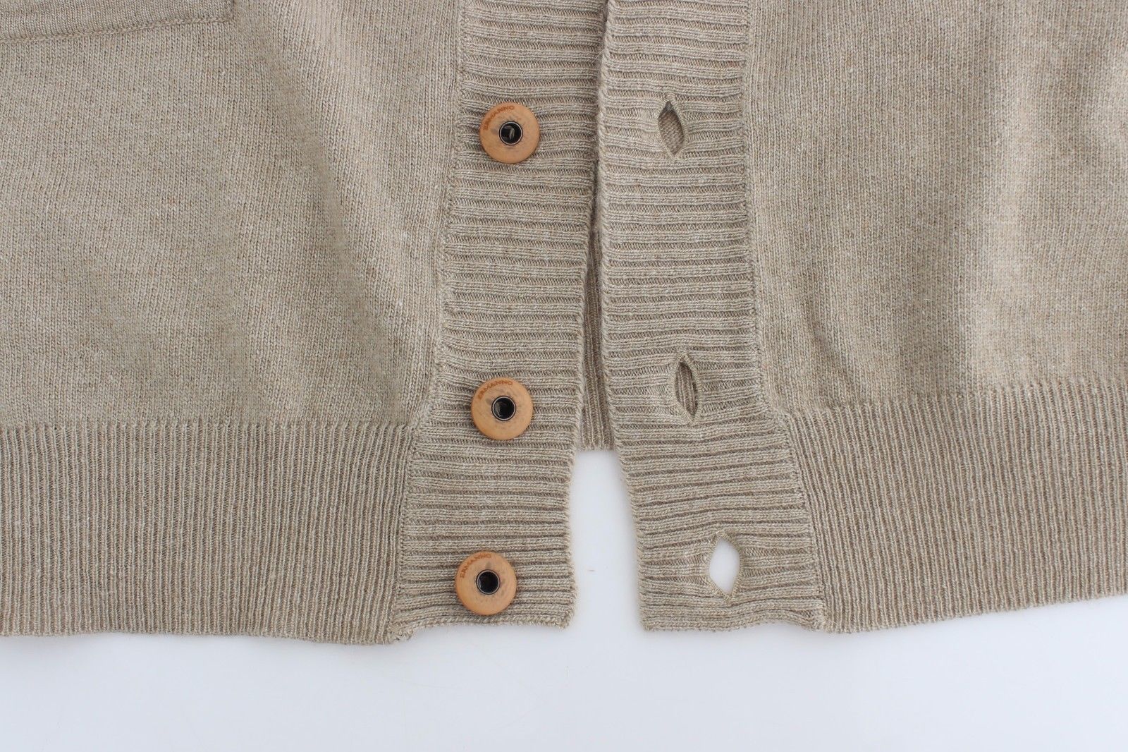 Beige Strickjacke Wolle Kaschmir Pullover Strick
