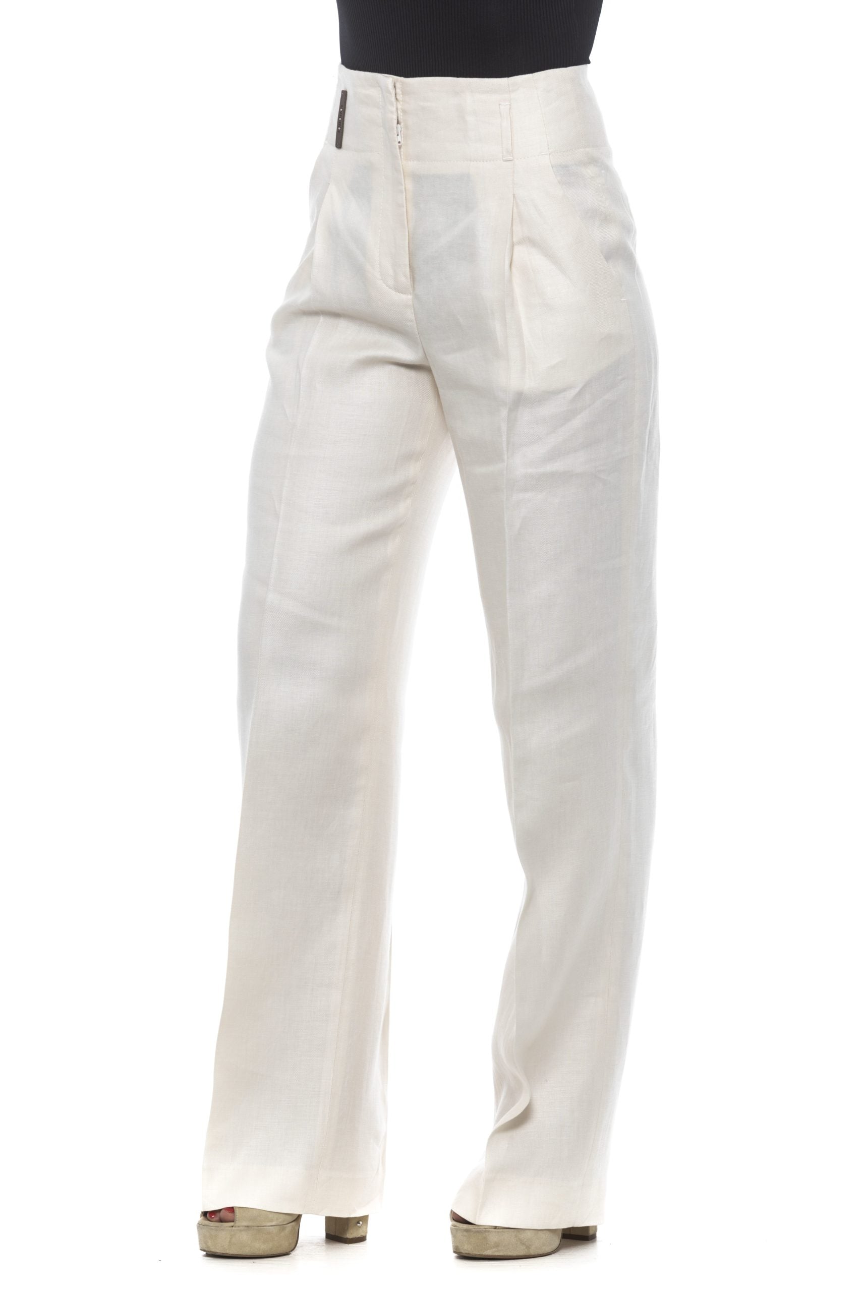 Hoch taillierte Palazzo-Hose. Zwei Seitentaschen und zwei Fadentaschen auf der Rückseite. Verschluss mit Reißverschluss und versteckten Haken. Weiche Passform.