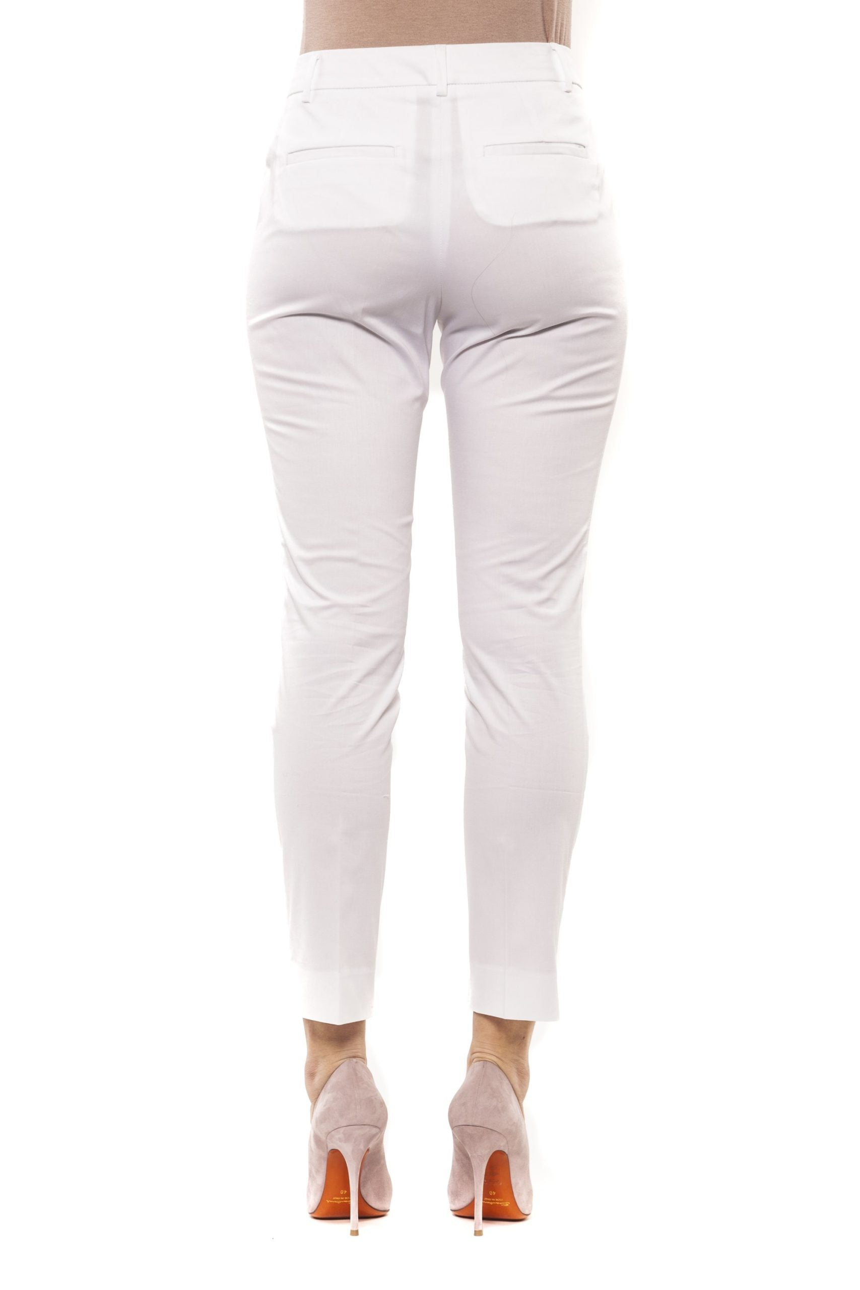 Klassische Stretch-Hose. Zwei Taschen auf der Vorderseite. Zwei Fadentaschen auf der Rückseite. Normale Taille. Kleine Schlitze an der Unterseite. Verschluss mit Häkchen und verstecktem Reißverschluss. Schmale Passform.