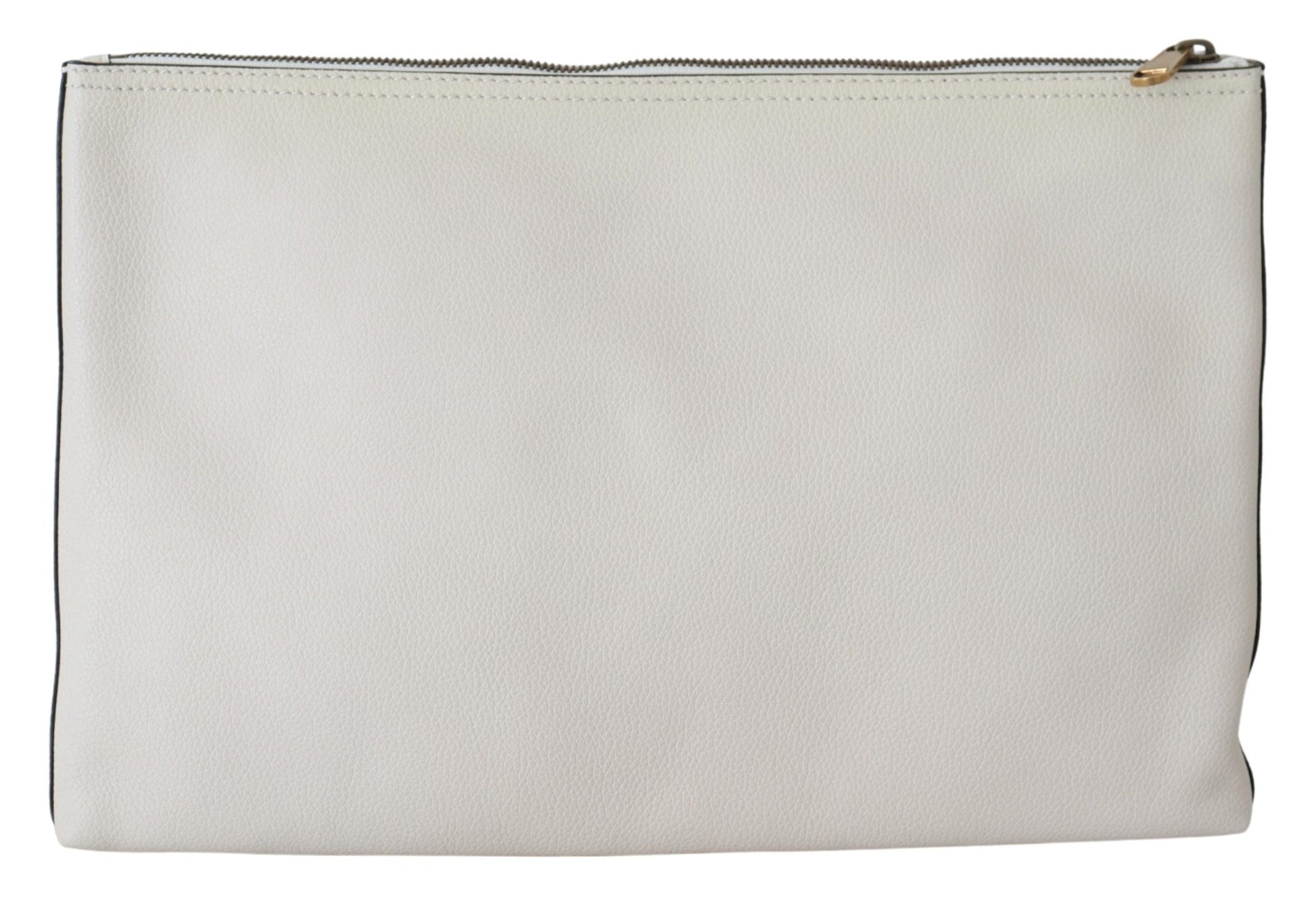 Big Pouch Clutch Tasche aus weißem Leder mit Kieselsteinen