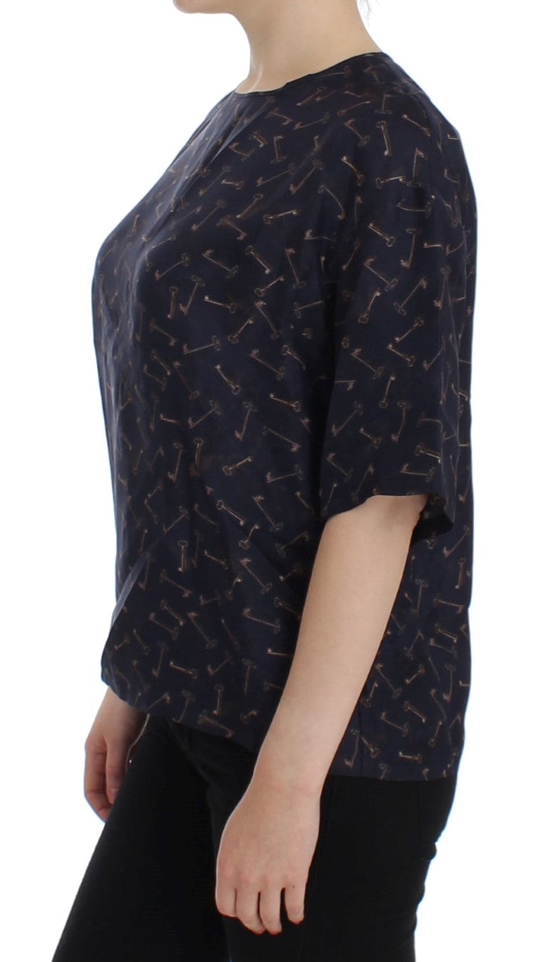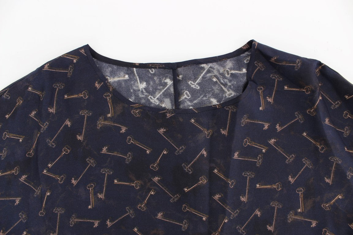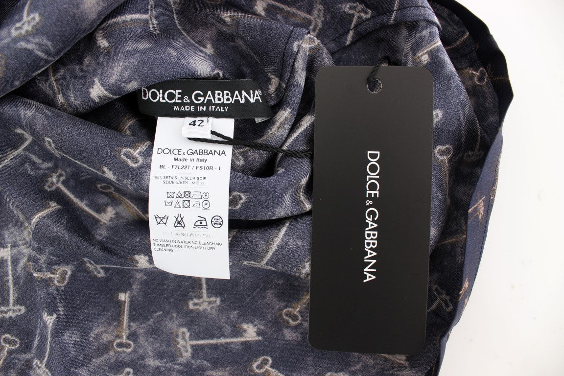 Wunderschöne brandneu mit Tags, 100% Authentic DOLCE & GABBANA blaue Seide Bluse Top mit mittelalterlichen Gold Keys drucken. Dieser Artikel stammt aus der exklusiven MainLine Dolce & Gabbana Kollektion.