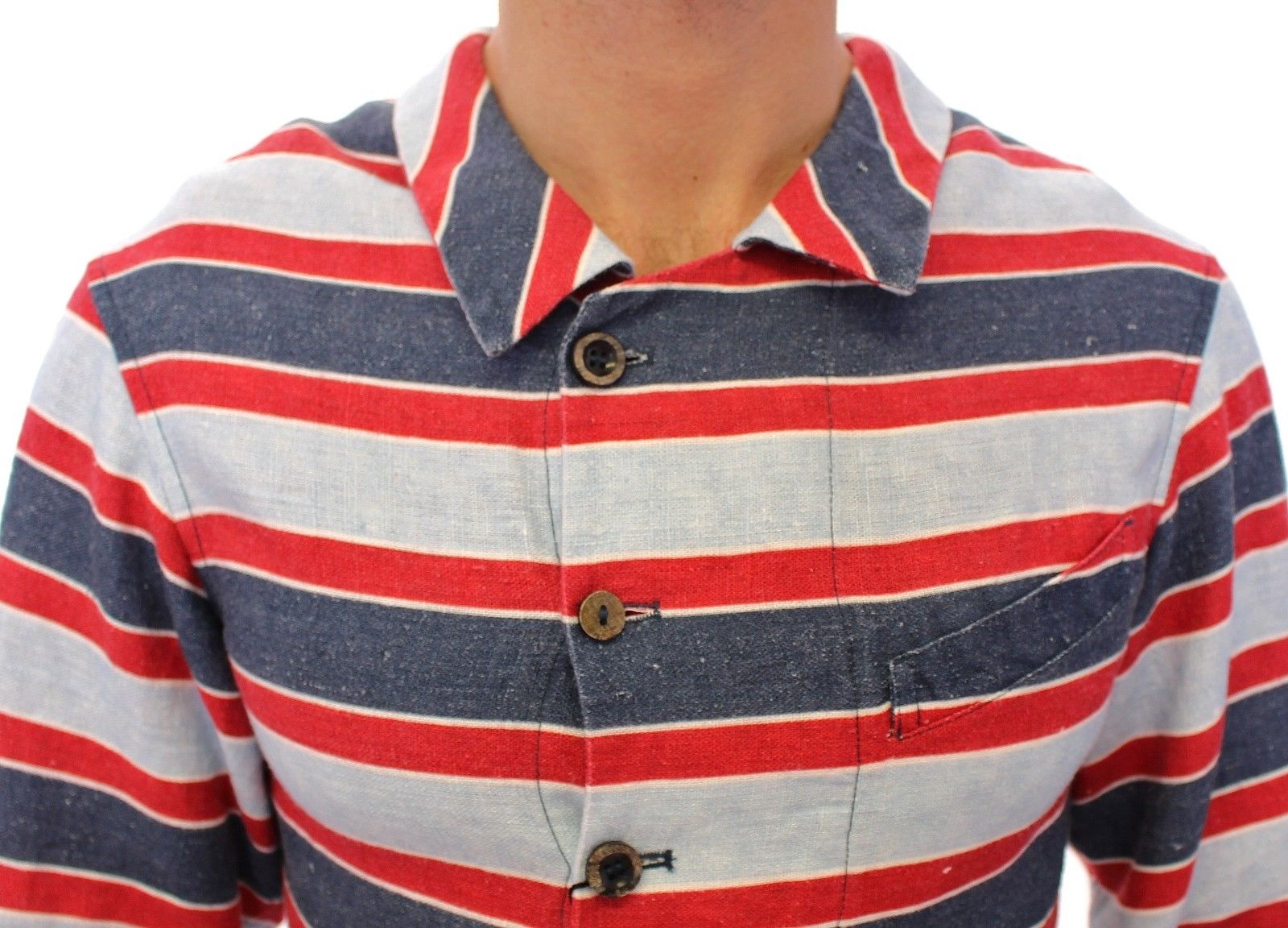 Absolut atemberaubend, 100% authentisch, ganz neu mit Tags Dolce & Gabbana Blau und rot gestreiftes Leinenhemd von der Landebahn. Dieser Artikel stammt aus der MainLine Dolce & Gabbana Kollektion.