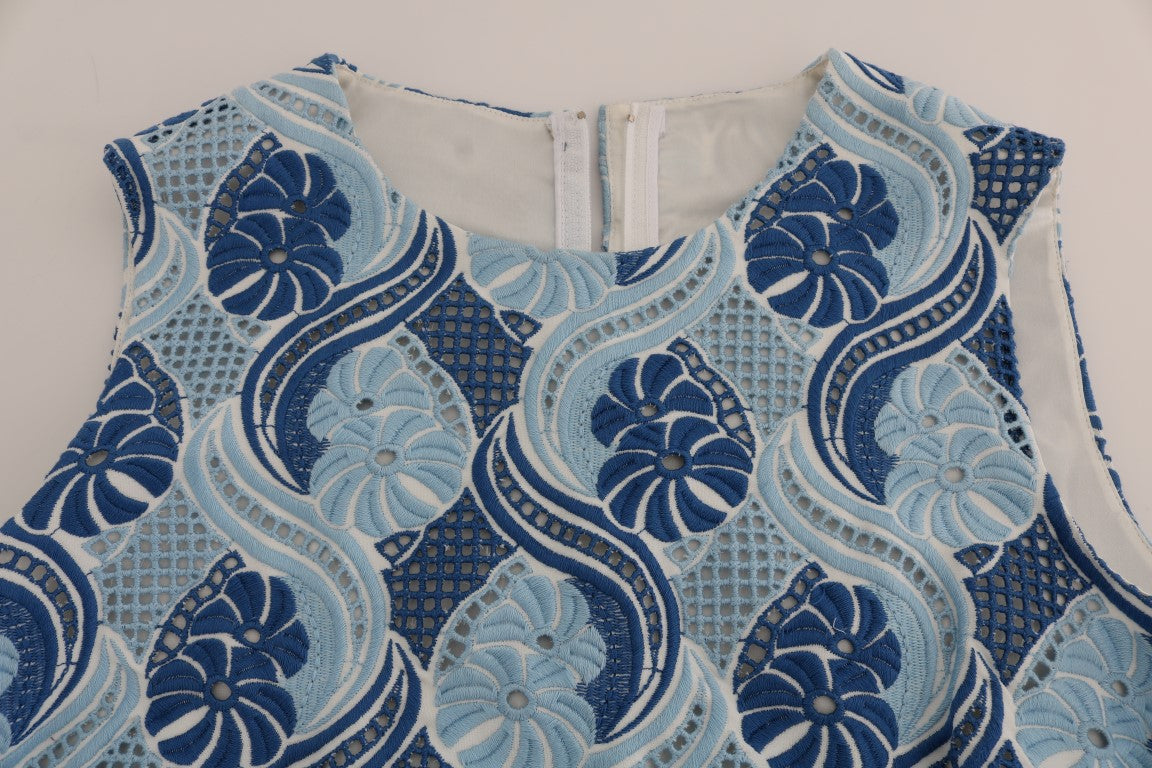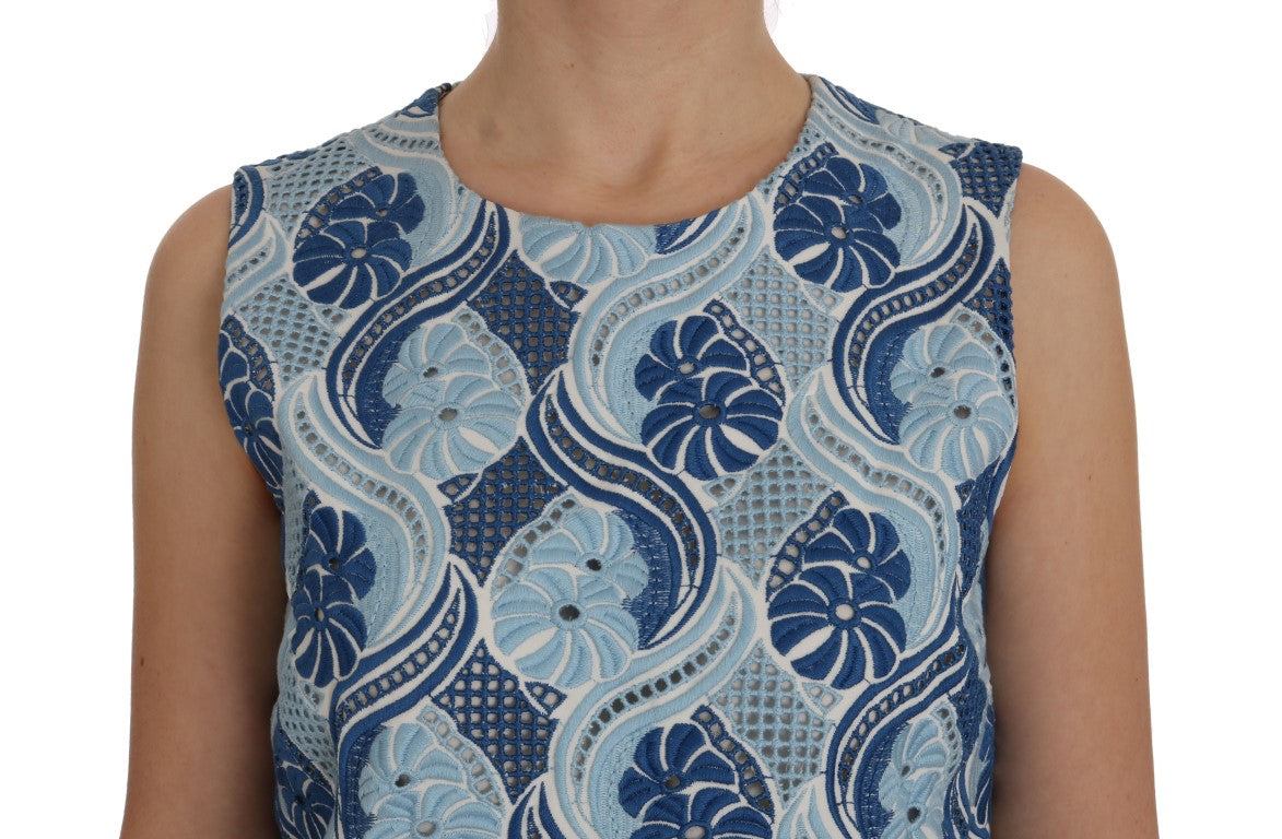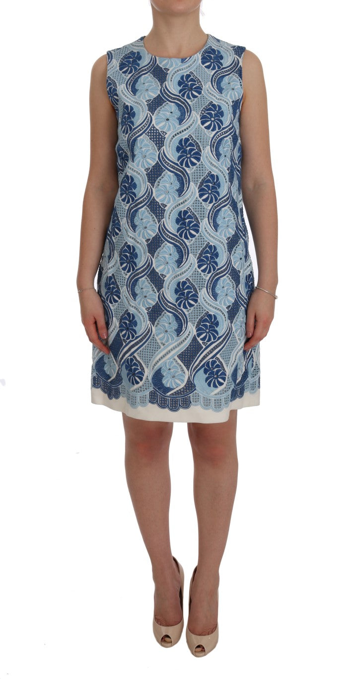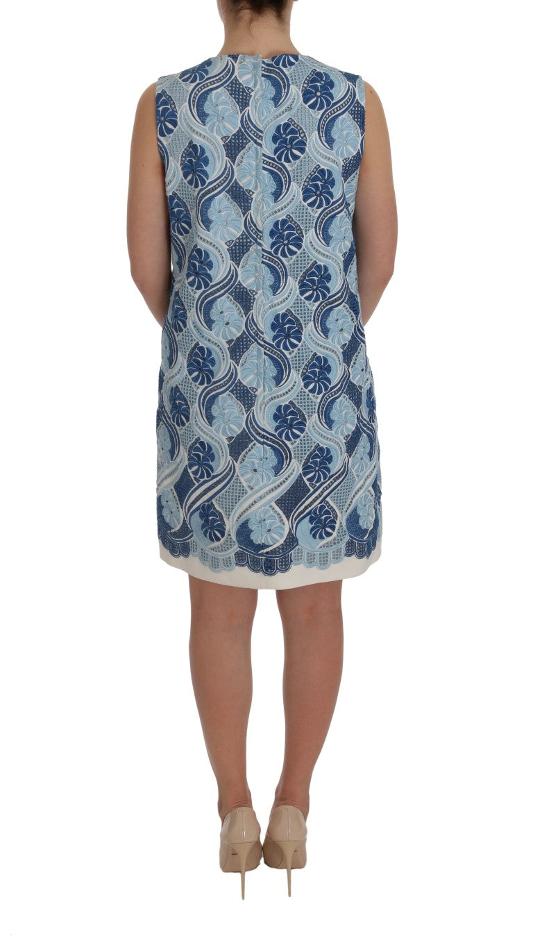 Wunderschöne brandneue mit Tags, 100% Authentic Dolce & Gabbana blau und weiß floral Ricamo Etuikleid.