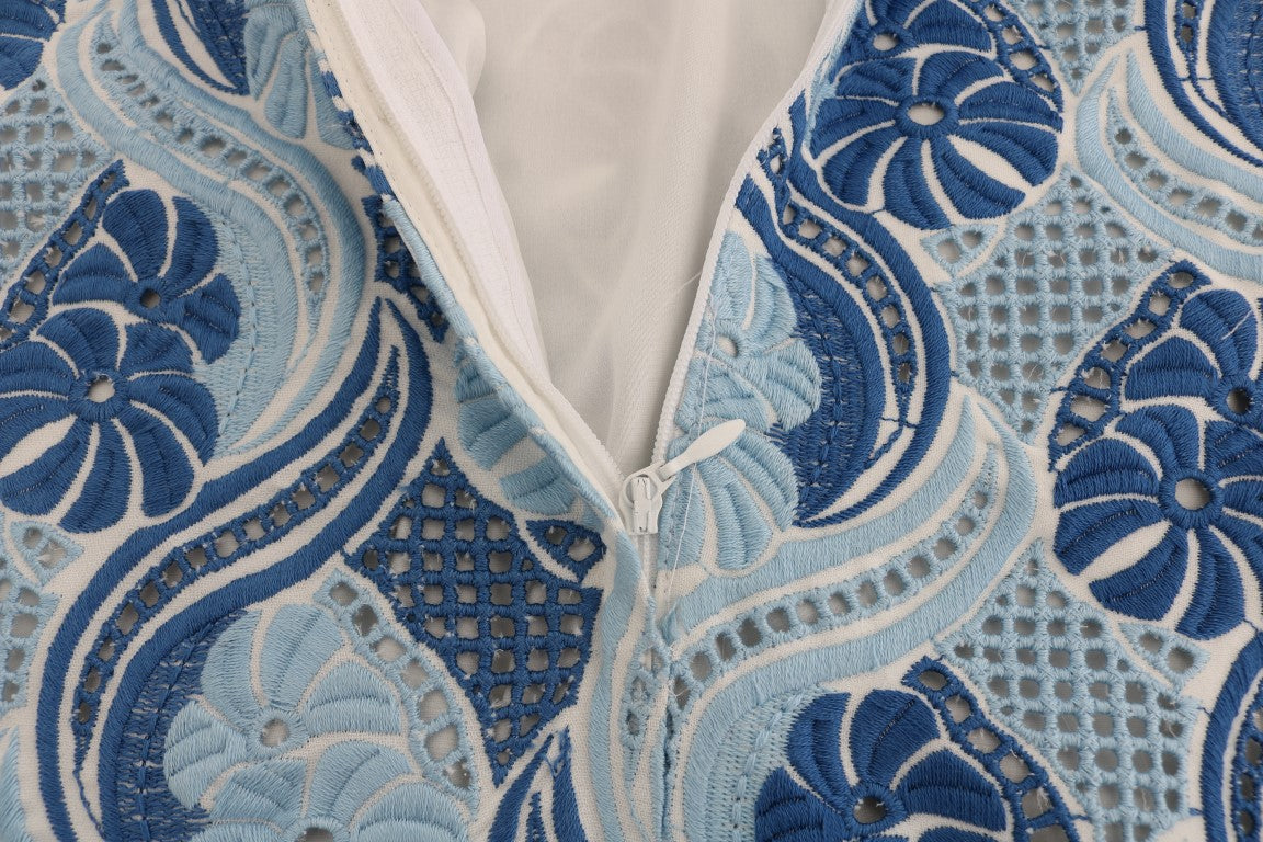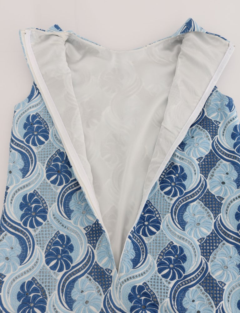 Blau Weiß Geblümtes Ricamo Etuikleid