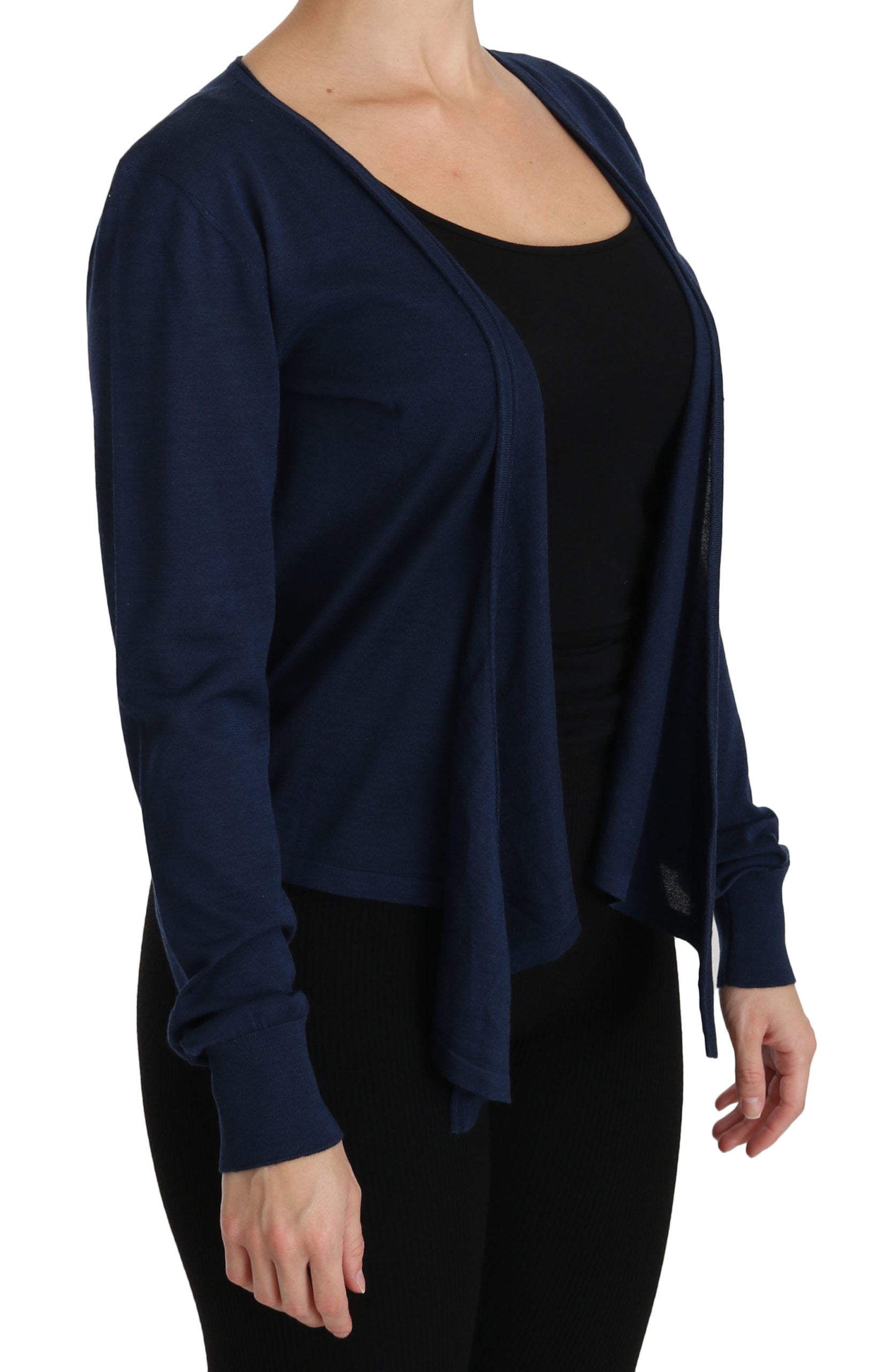 Blaue Langarm-Strickjacke Kaschmirpullover