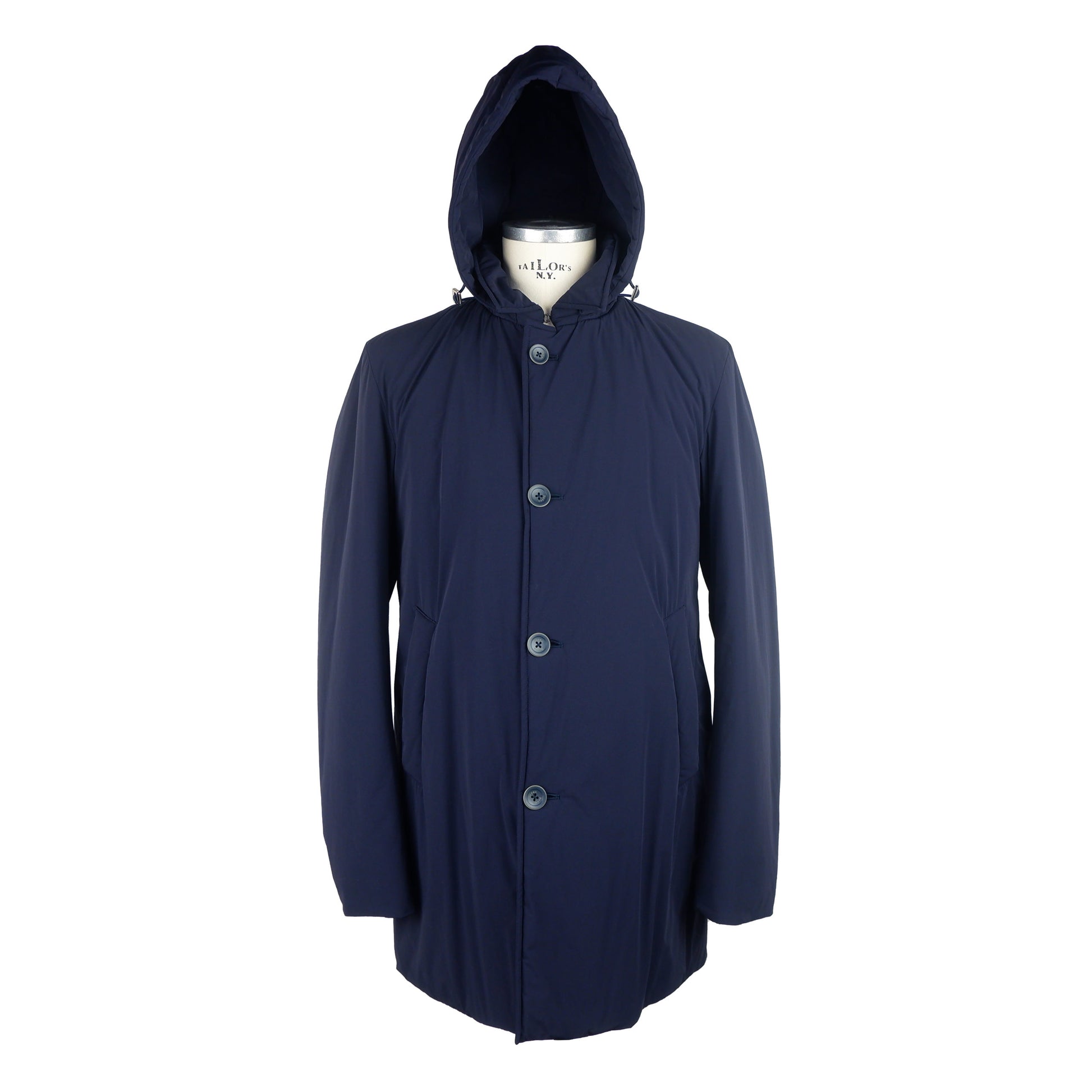 Blaue Polyamid Daunenjacke mit Kapuze Mantel