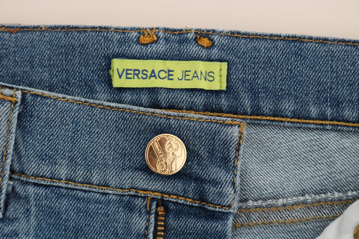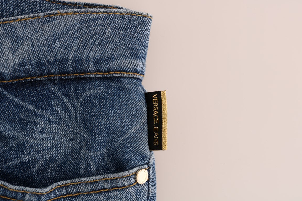 Absolut atemberaubend, 100% authentisch, ganz neu mit Tags Versace Jeans VJ blau waschen drucken Baumwolle Stretch-Jeans.