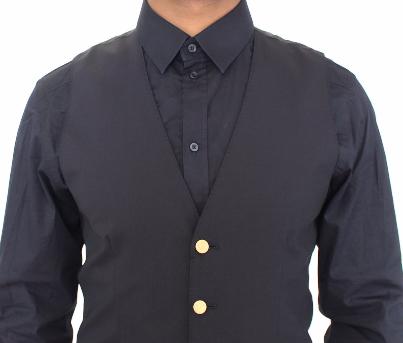 Absolut atemberaubend, 100% authentisch, ganz neu mit Tags Dolce & Gabbana blaue Wolle Stretch Dress Vest mit Gold-Club Tasten. Dieser Artikel stammt aus der MainLine Dolce & Gabbana Kollektion.