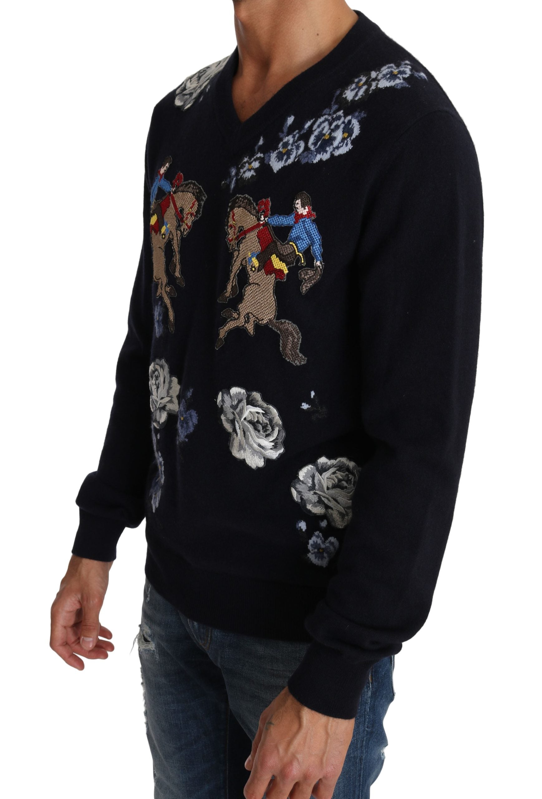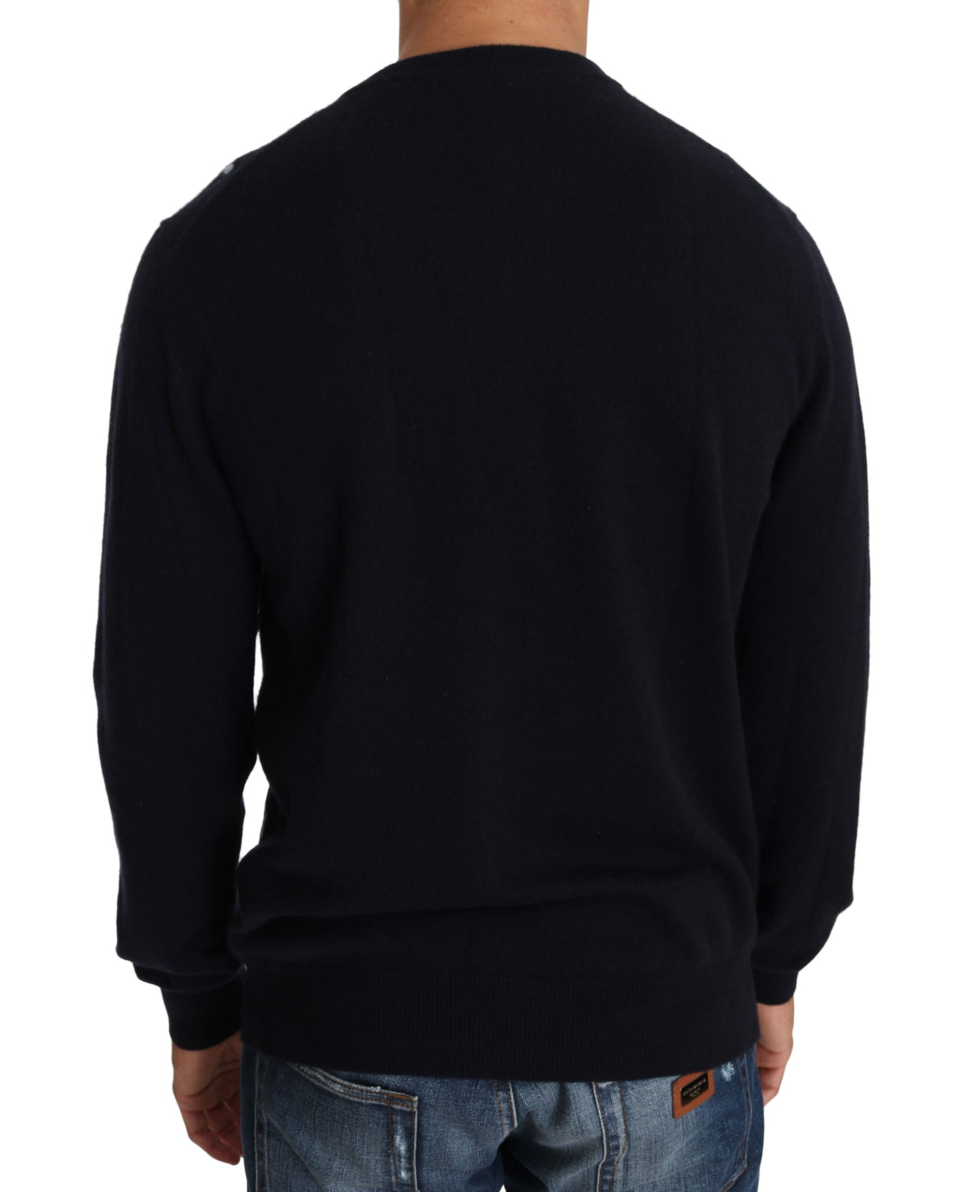 Blauer Cowboy-Rosen Kaschmirpullover mit V-Ausschnitt