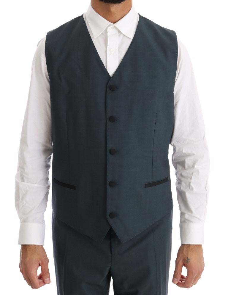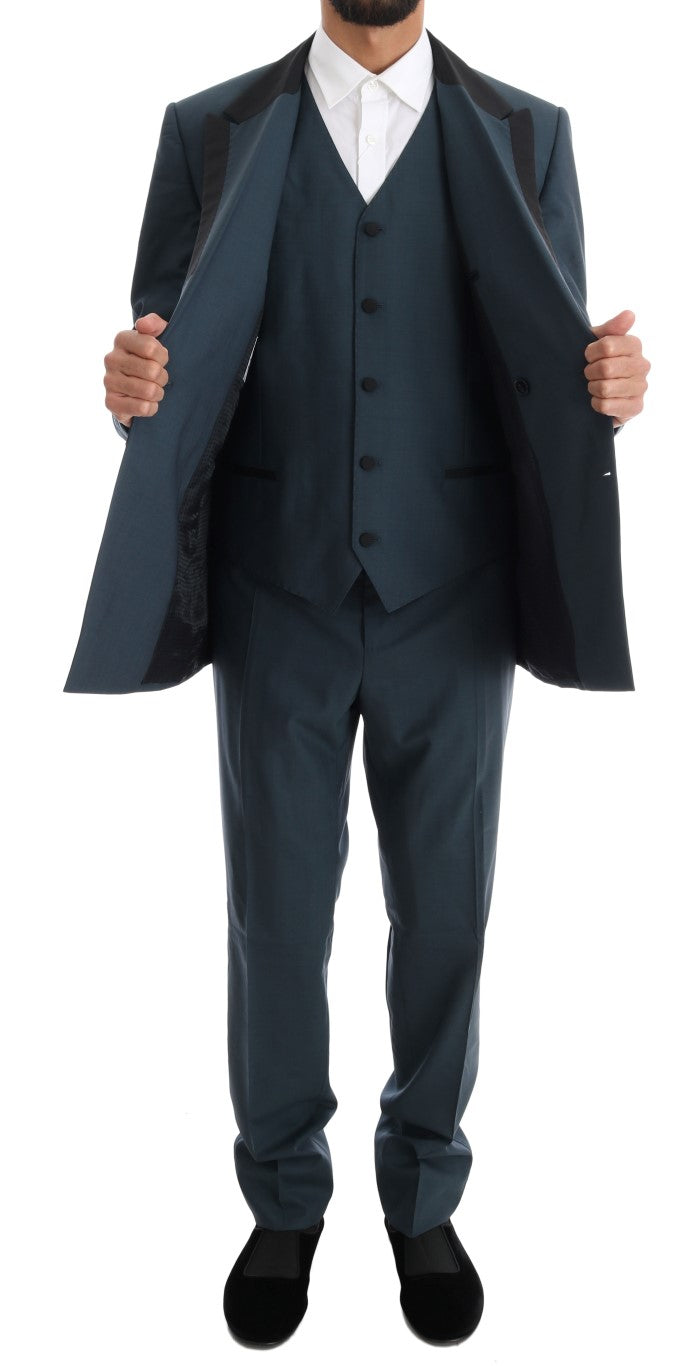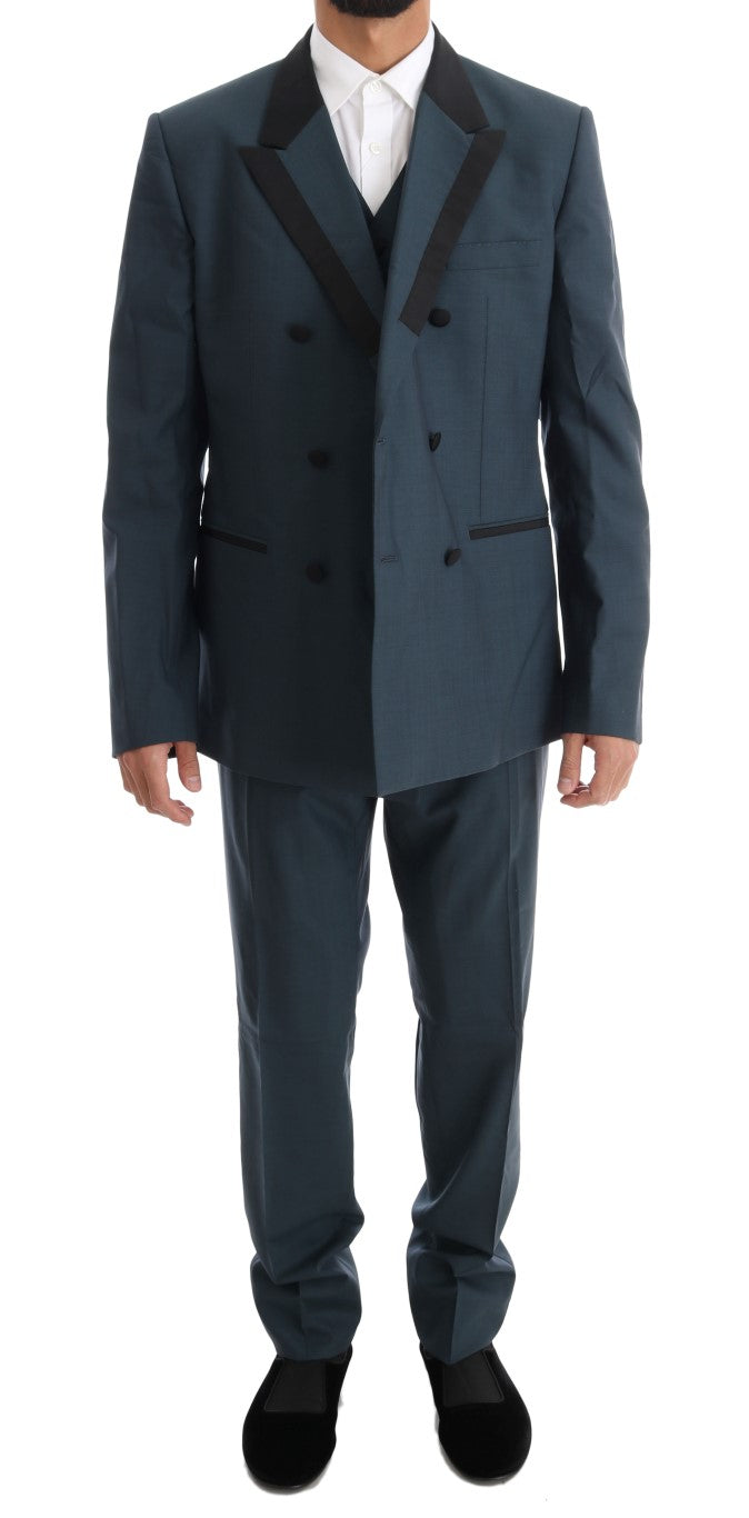 Blauer doppelreihiger 3-teiliger Anzug aus Wolle