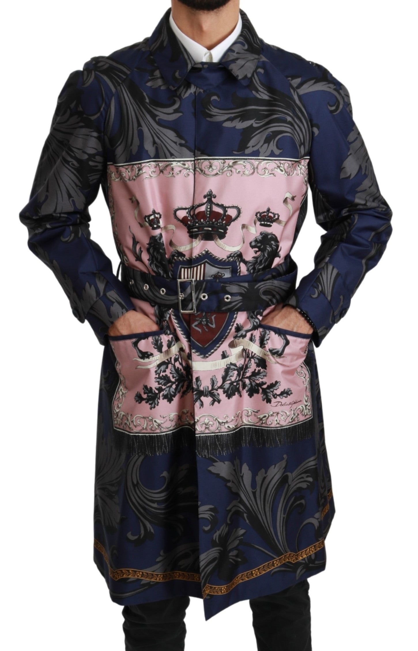 Blauer Royal Crown Trenchcoat Seidenjacke