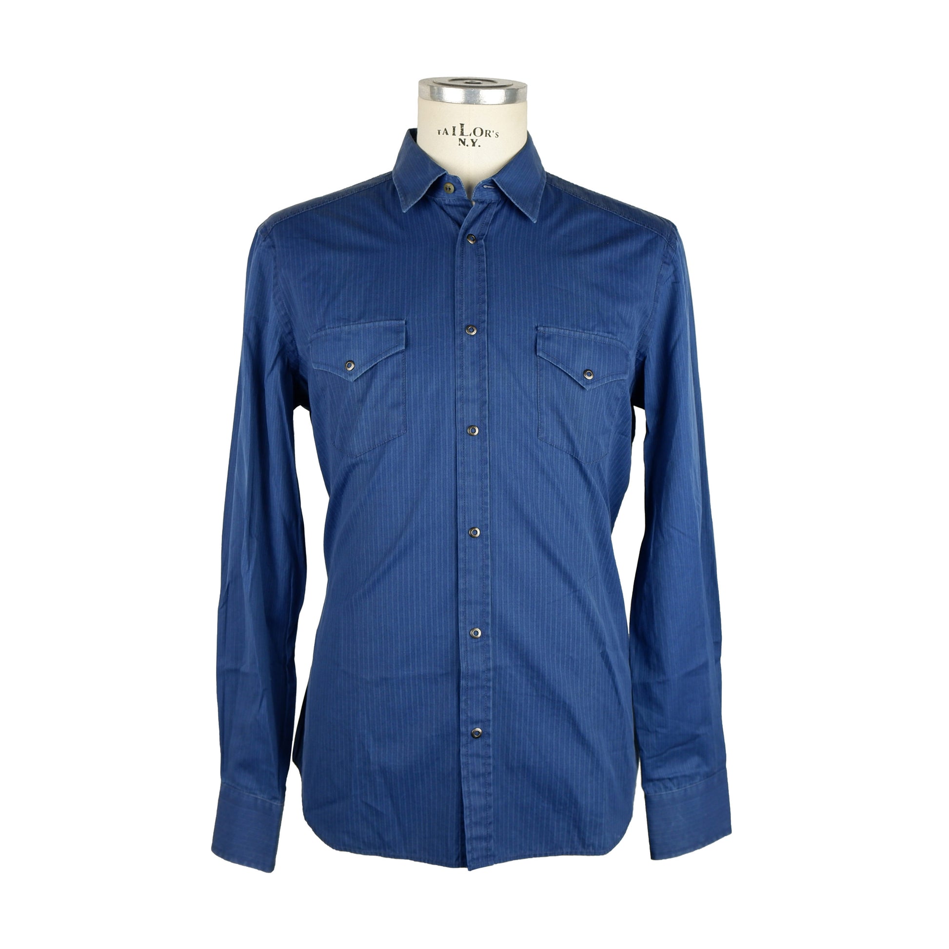 Herrenhemd von Jacob Cohen aus blau gestreifter Baumwolle. In Italien hergestellt