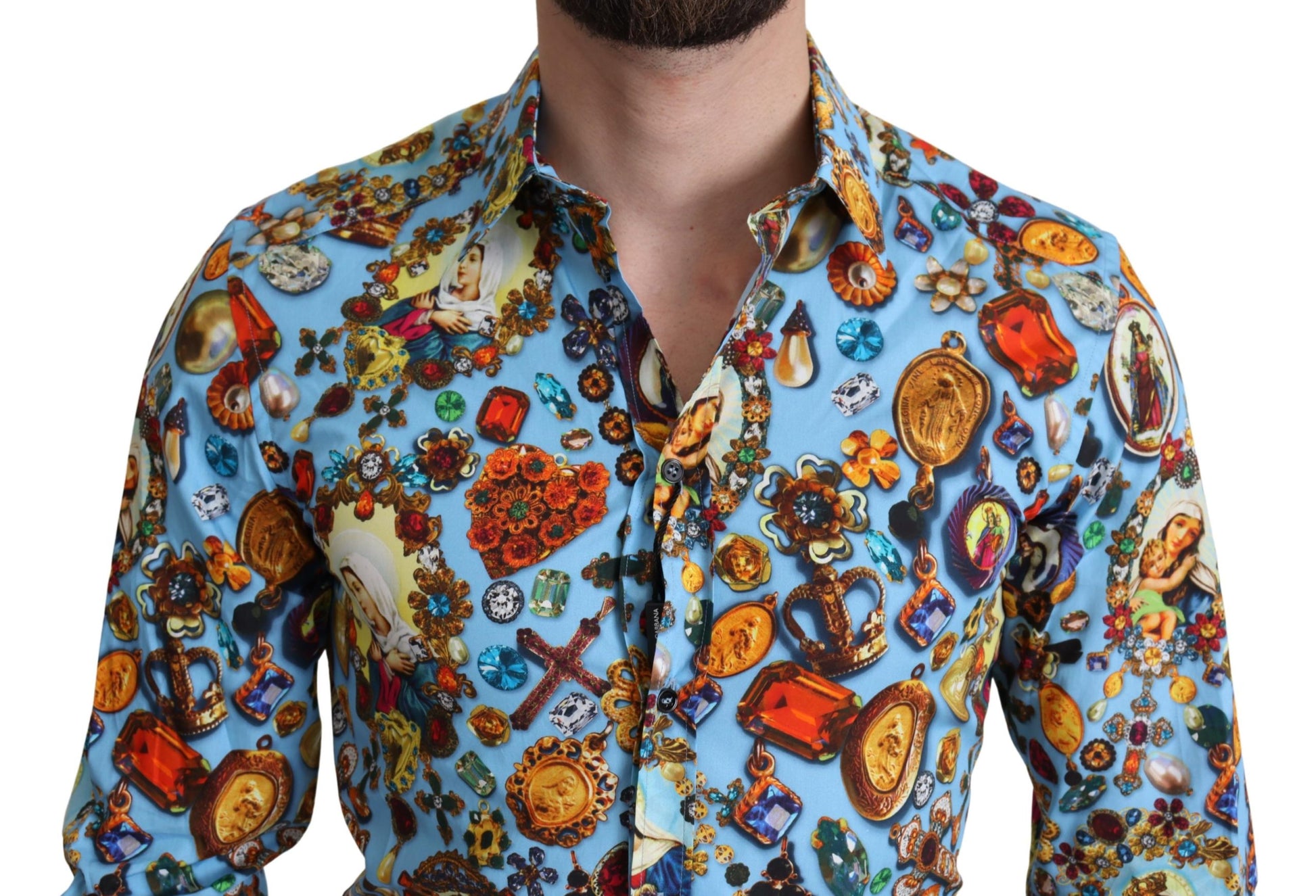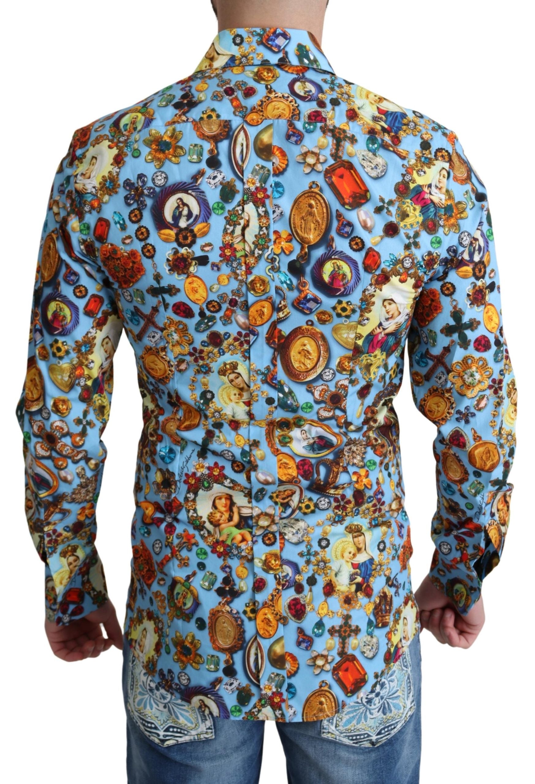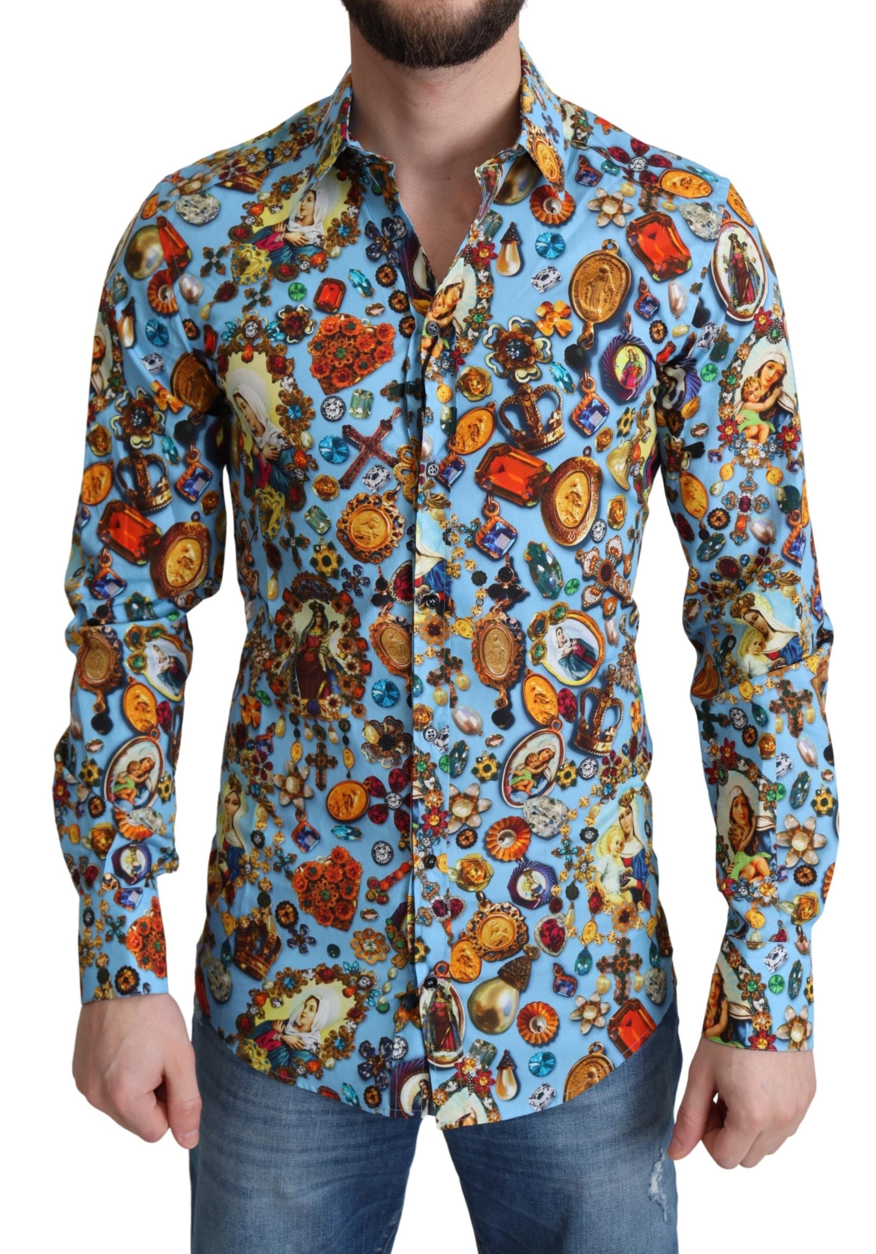 Absolut atemberaubend, 100% authentisch, ganz neu mit Tags Dolce & Gabbana Baumwolle Button Down Casual Shirt mit Schmuck drucken.
