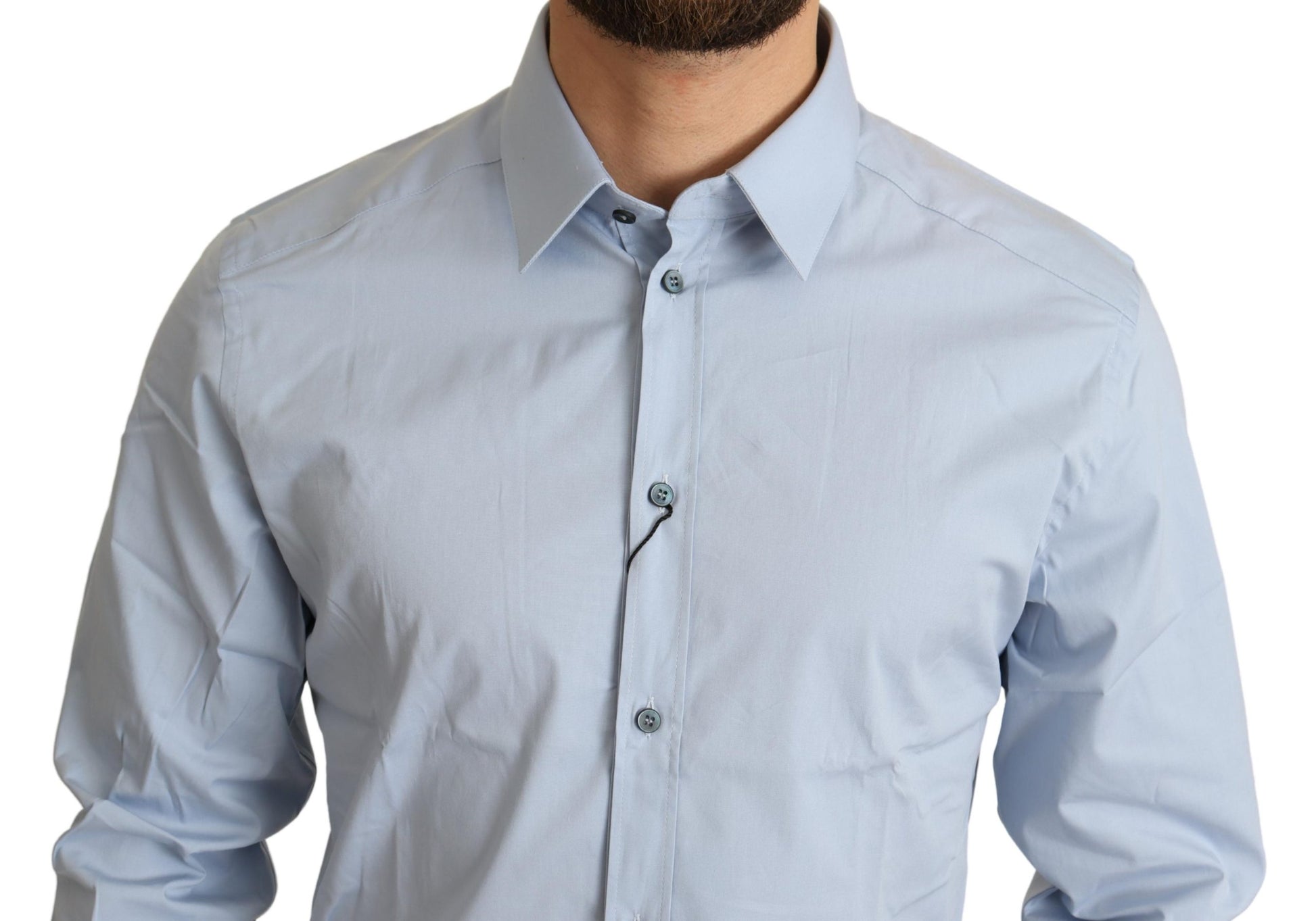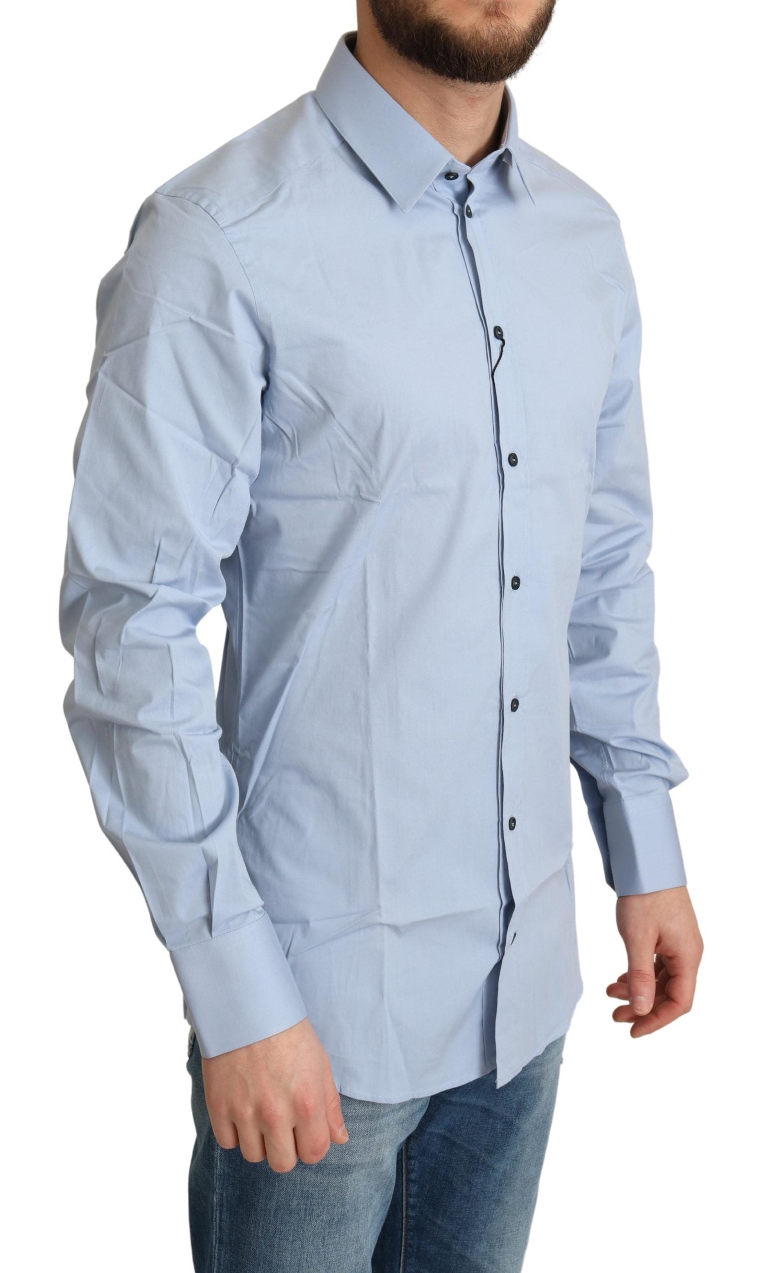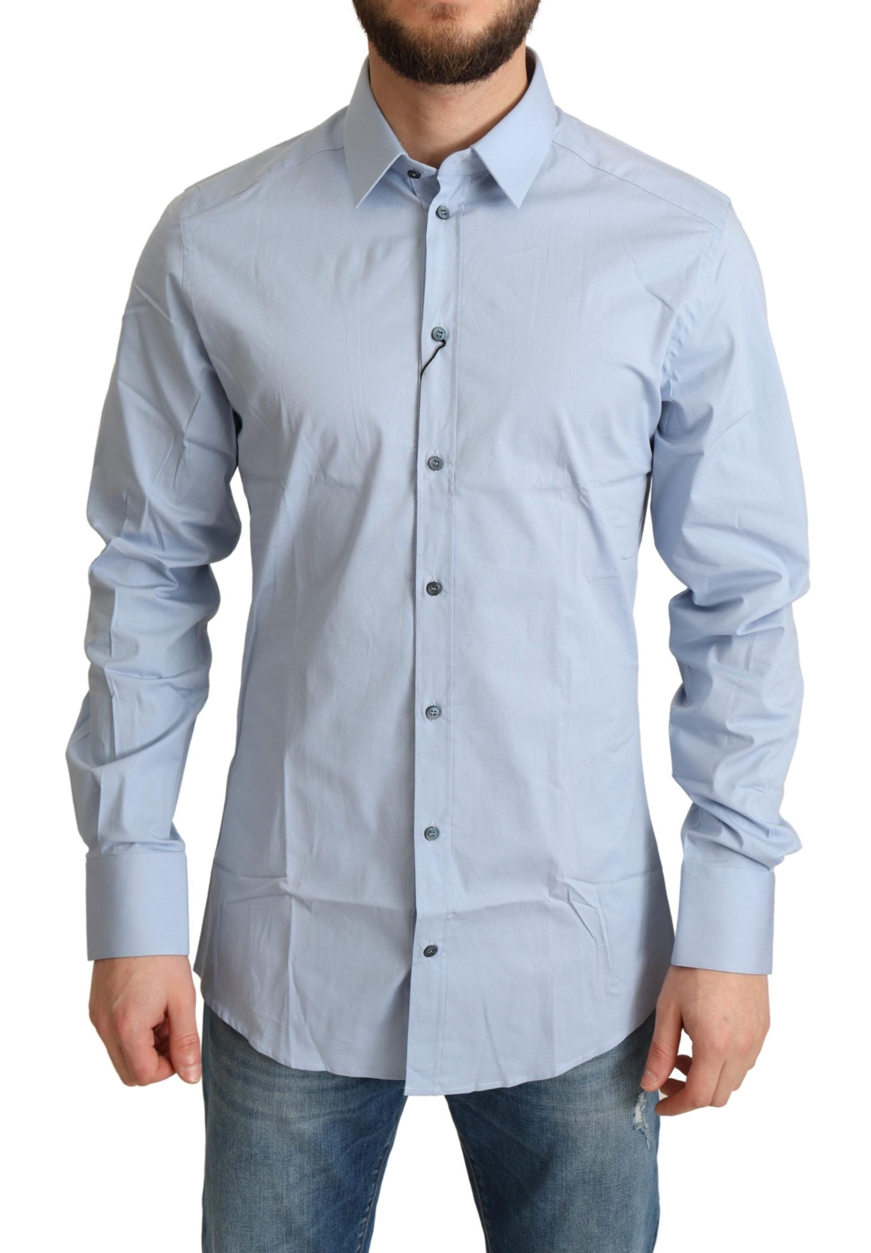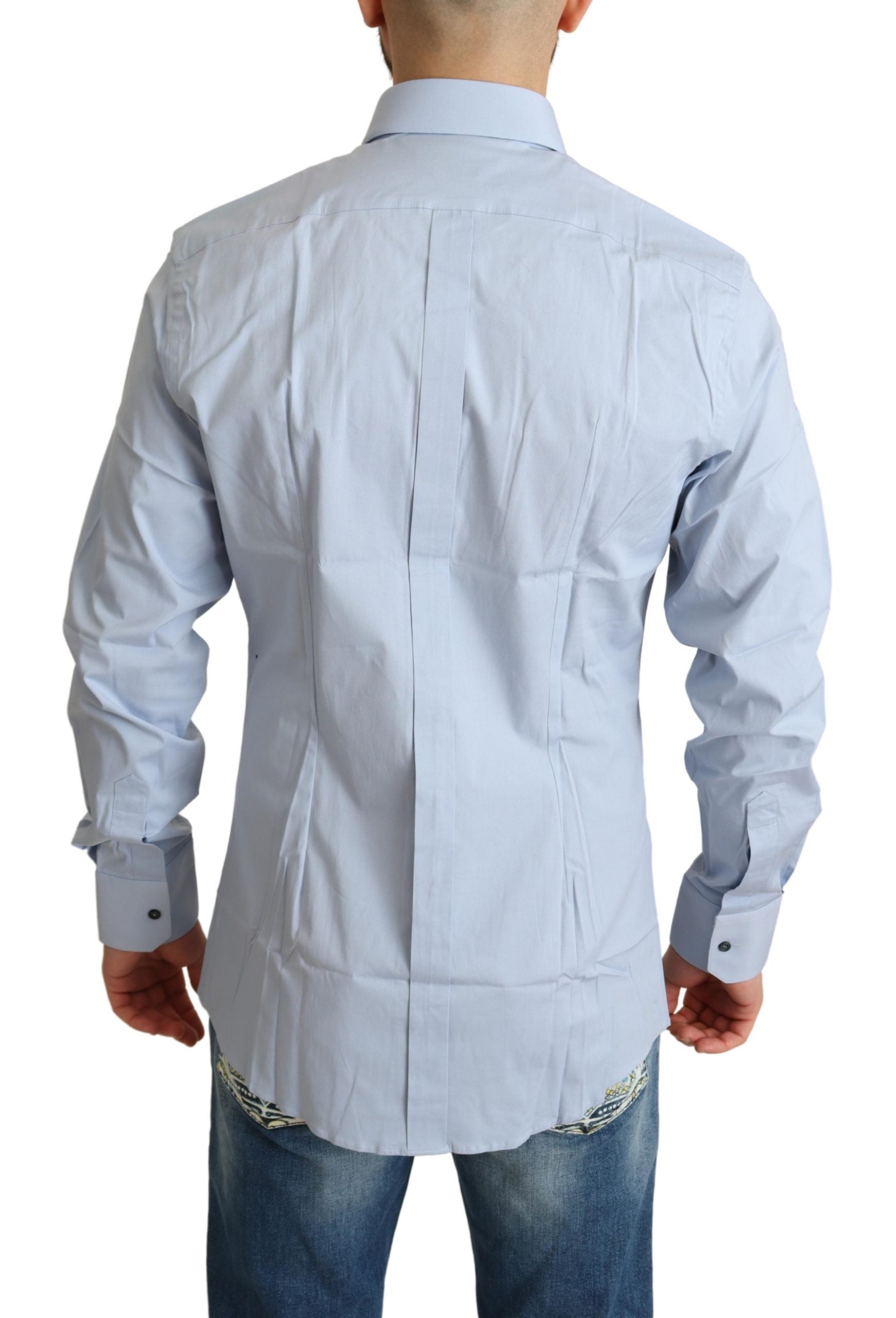 Blaues Baumwoll-Stretchhemd mit langen Ärmeln