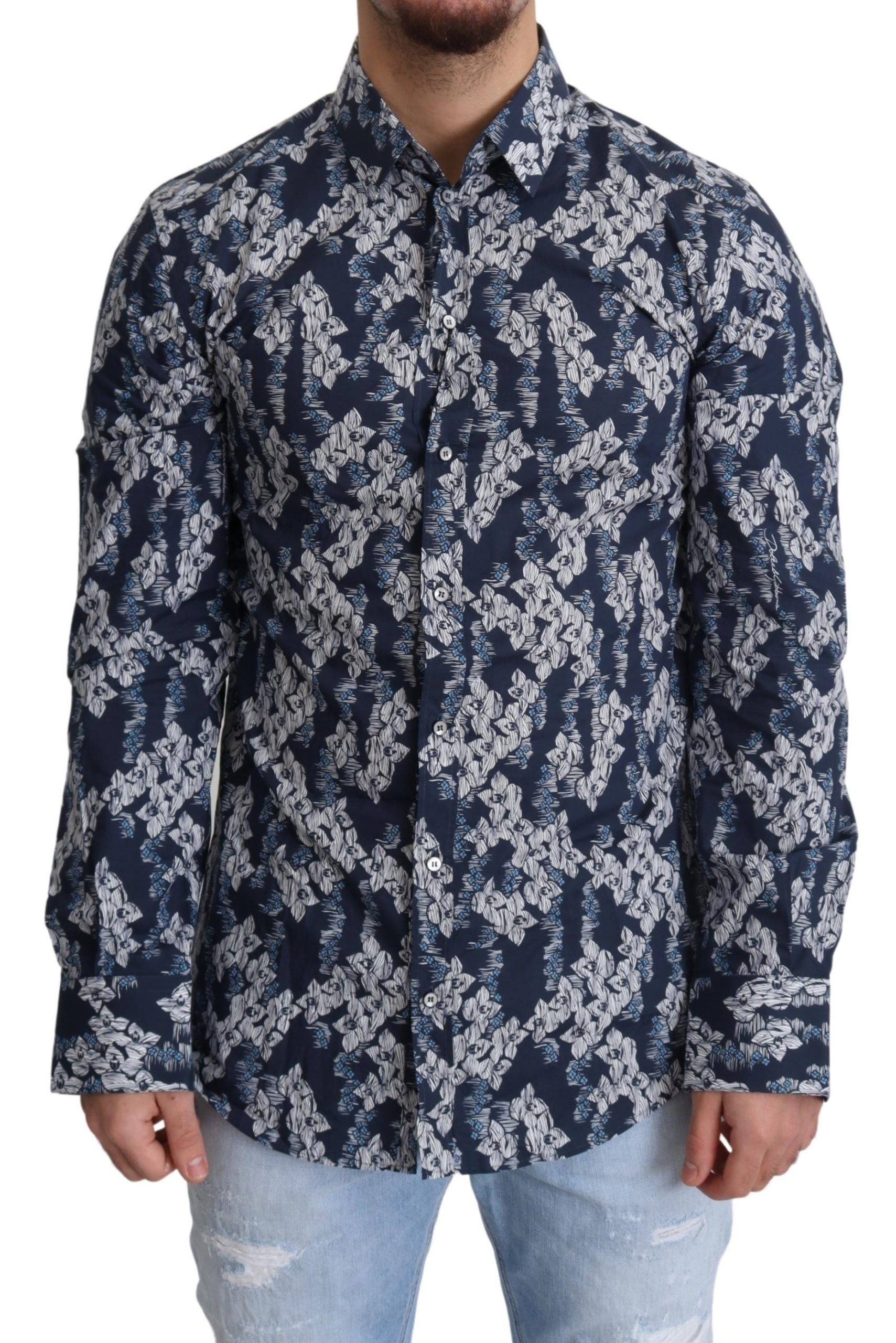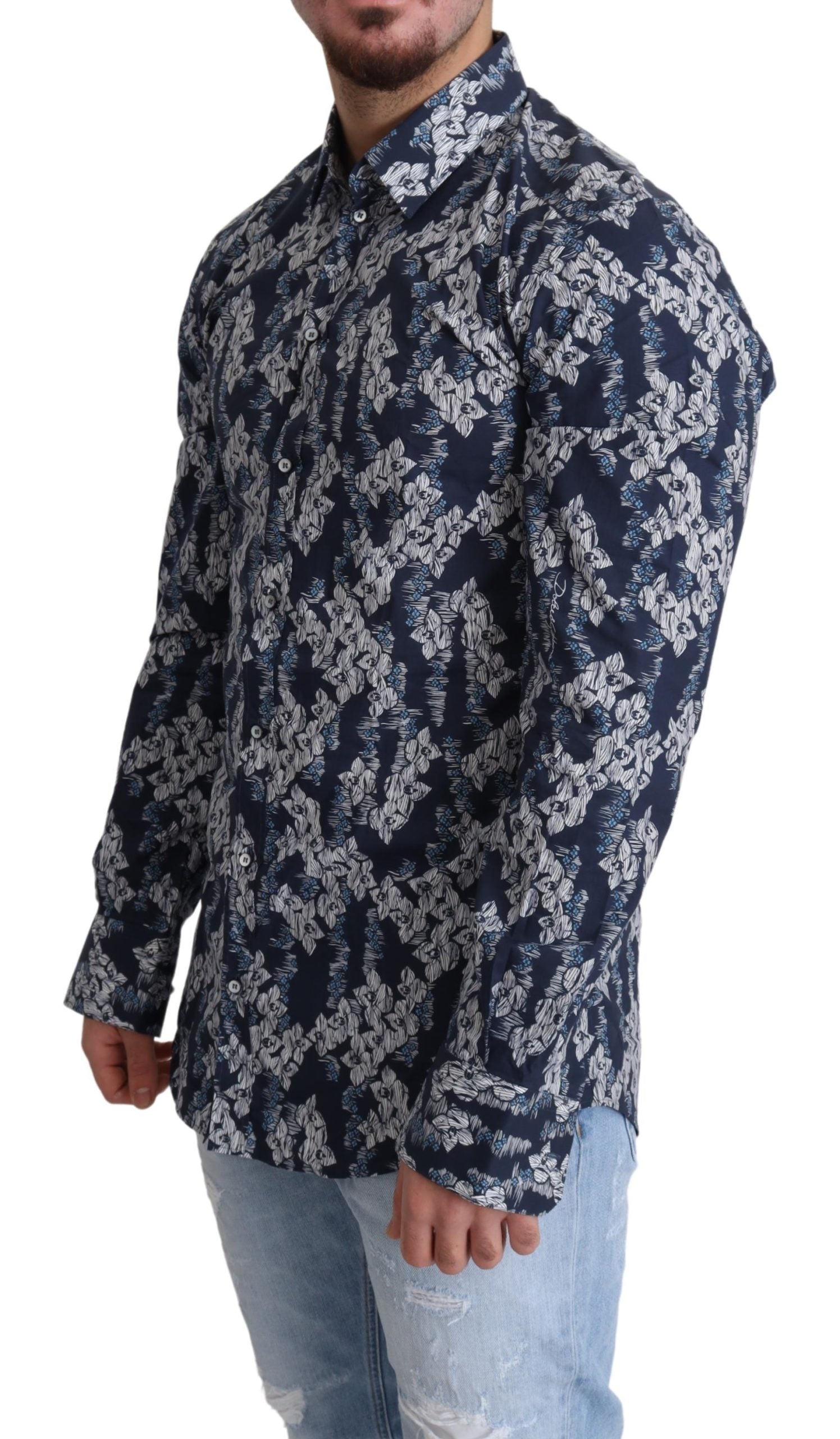 Absolut atemberaubend, 100% authentisch, brandneu mit Tags Dolce & Gabbana GOLD langärmeliges Freizeithemd mit gespreiztem Kragen aus Baumwolle mit Blumendruck gefertigt.