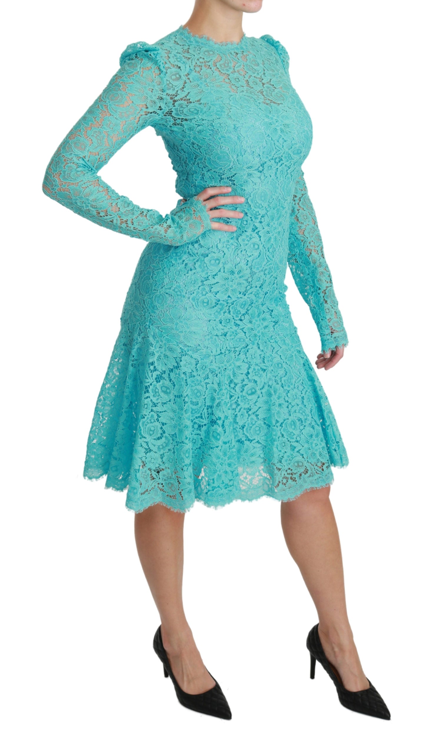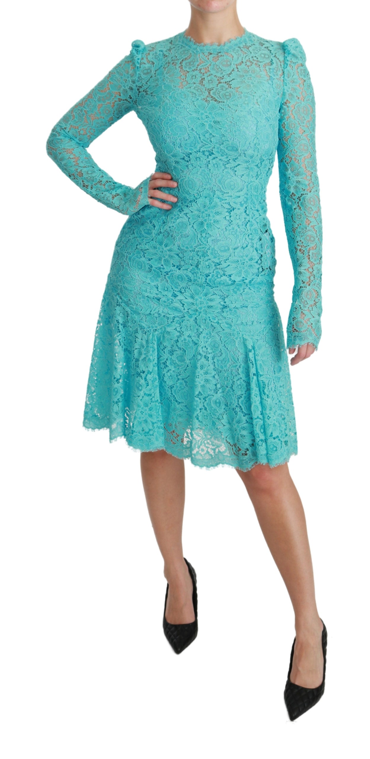 Blaues knielanges Spitzenkleid aus Baumwolle