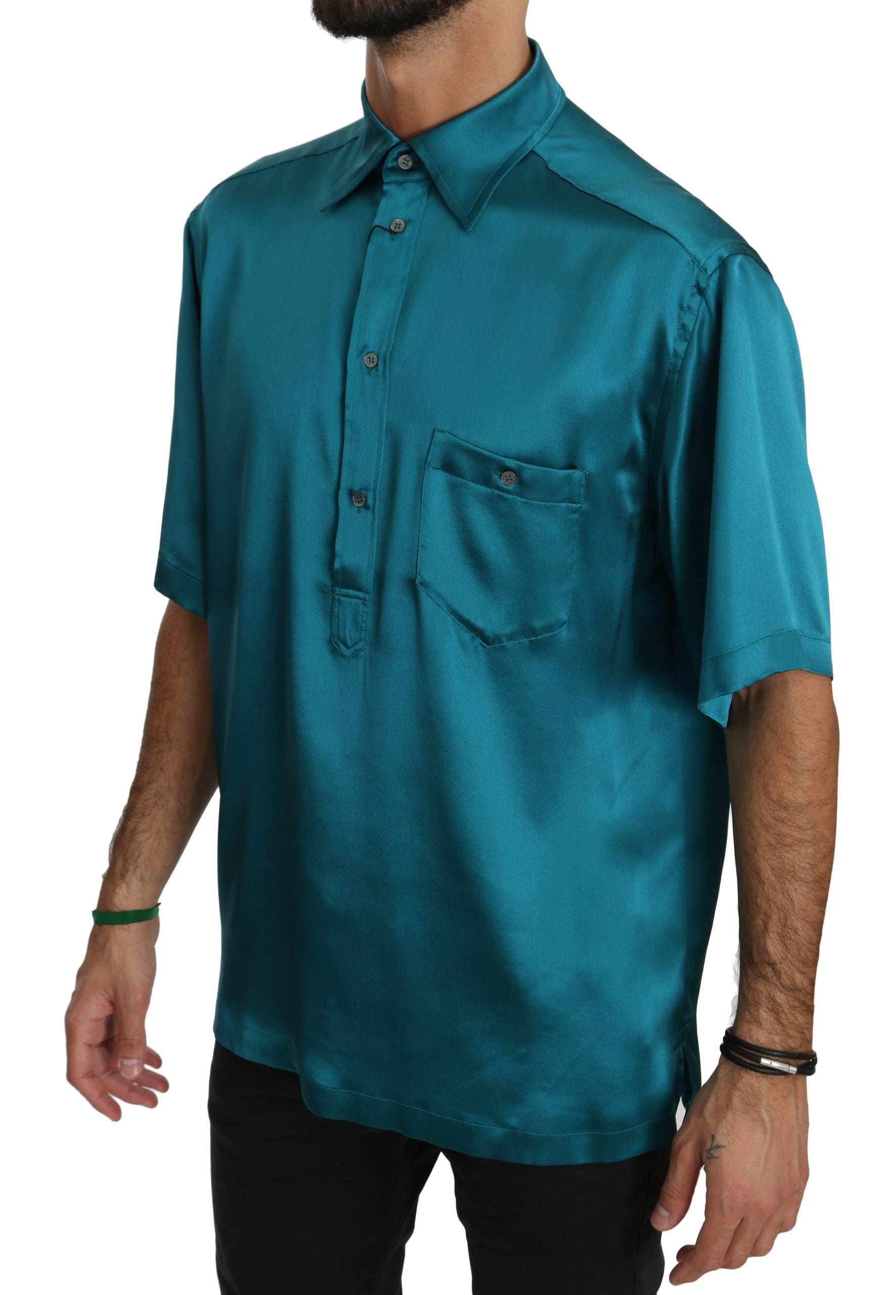 Blaues Kurzarmhemd aus 100% Seide