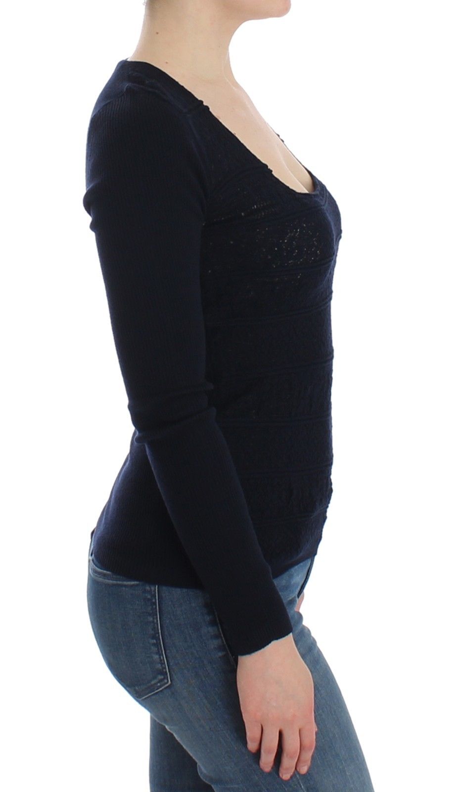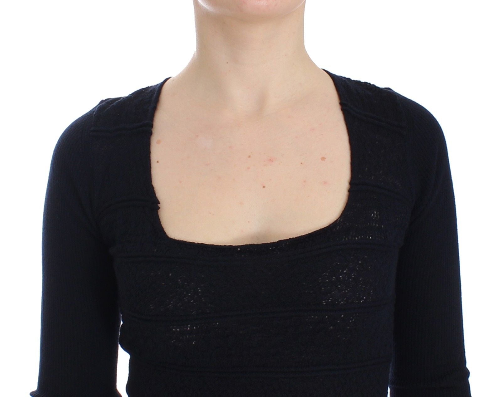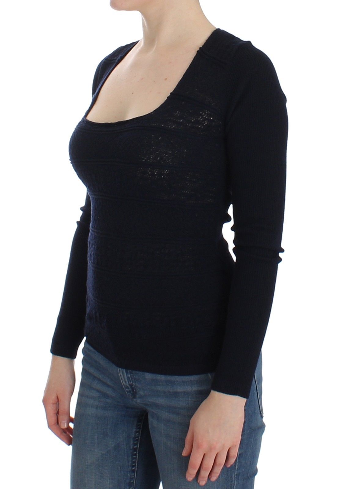 Blaues Pulloveroberteil aus gestrickter Stretch-Wolle