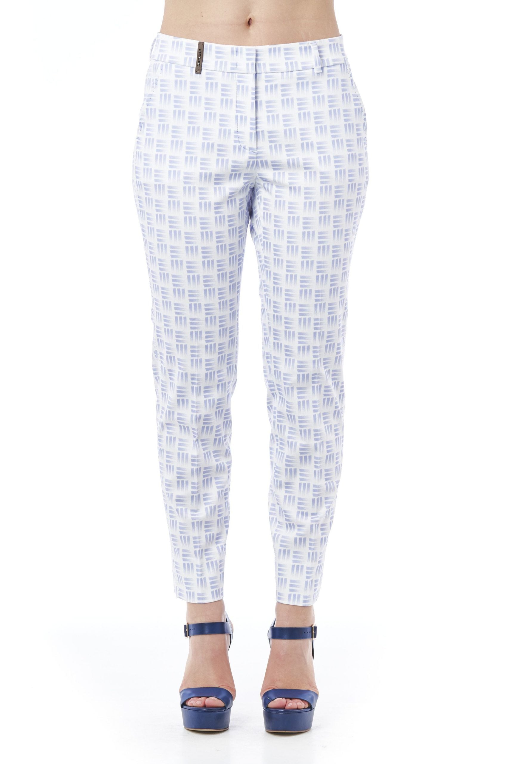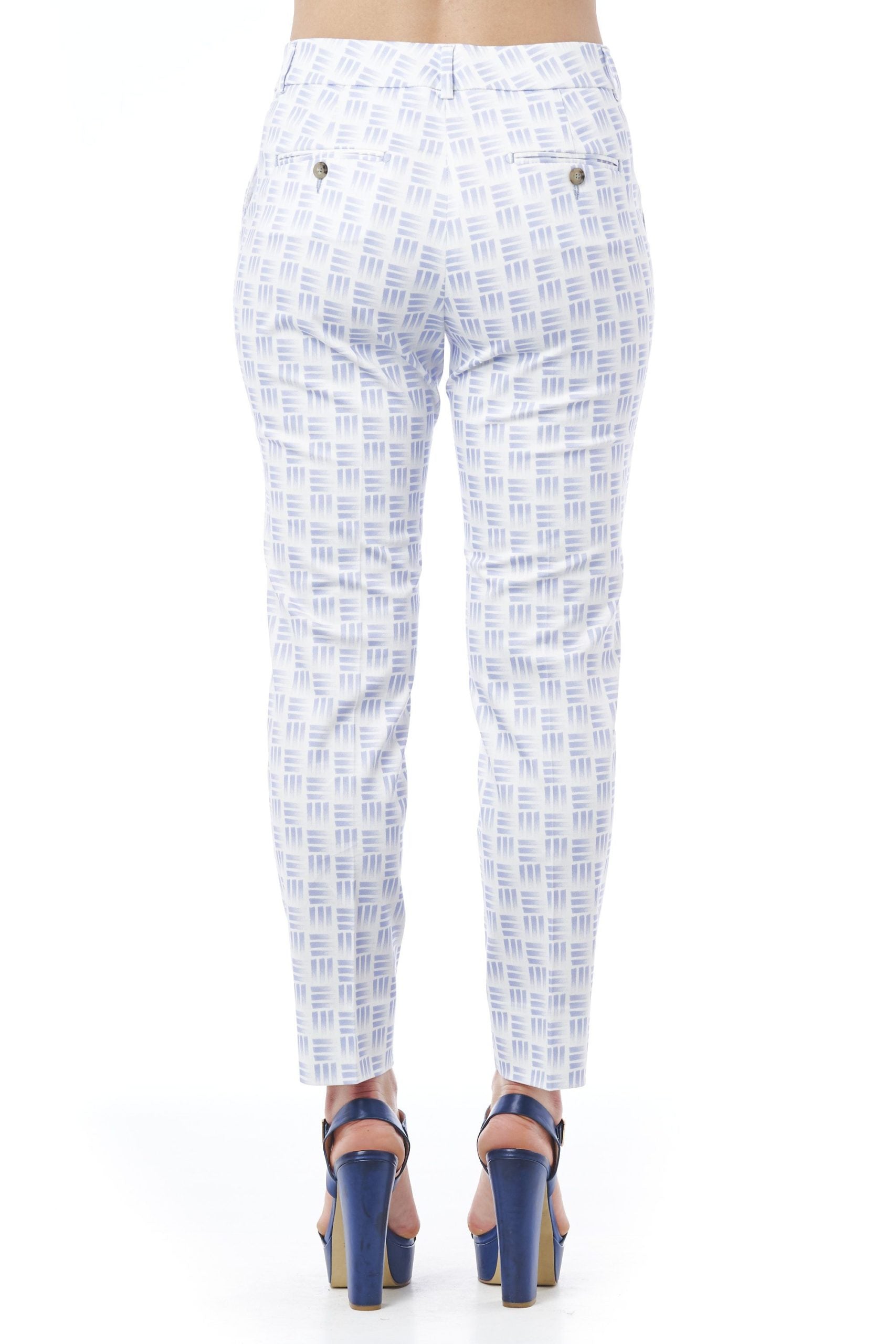 Hose mit geometrischem Muster und leichtem Stretch. Normale Taille. Zwei Taschen auf der Vorderseite und Eingrifftaschen auf der Rückseite. Verschluss mit Reißverschluss und versteckten Haken. Normale Passform mit geradem Bein.