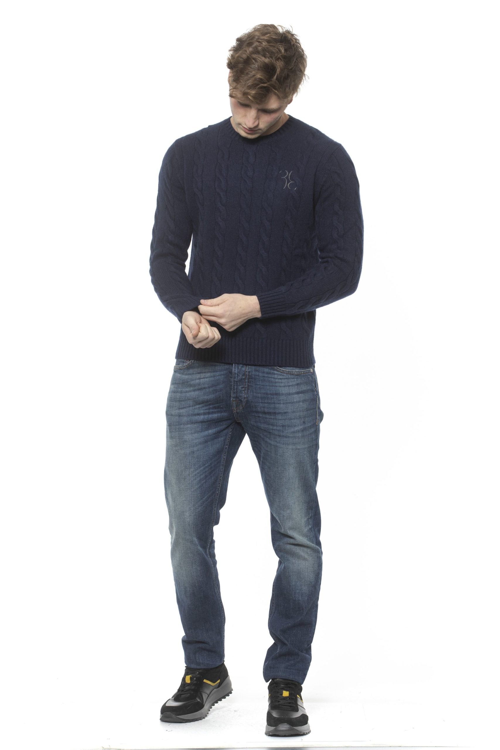 Kaschmir-Pullover mit Rundhalsausschnitt für Männer. Verschlungenes Motiv. Gesticktes Logo auf der Brust.