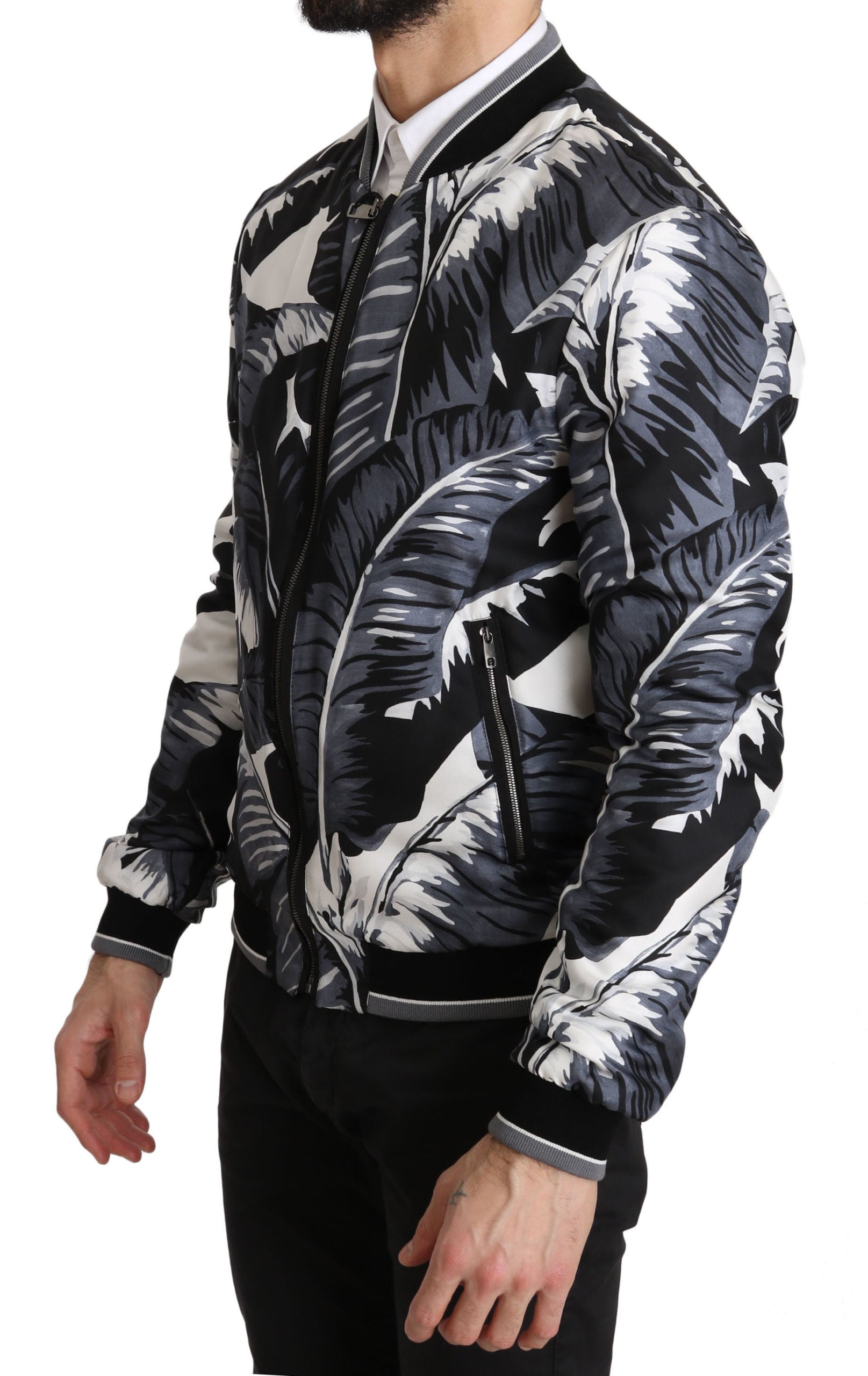 Bomberjacke aus Seide mit Bananenblättern