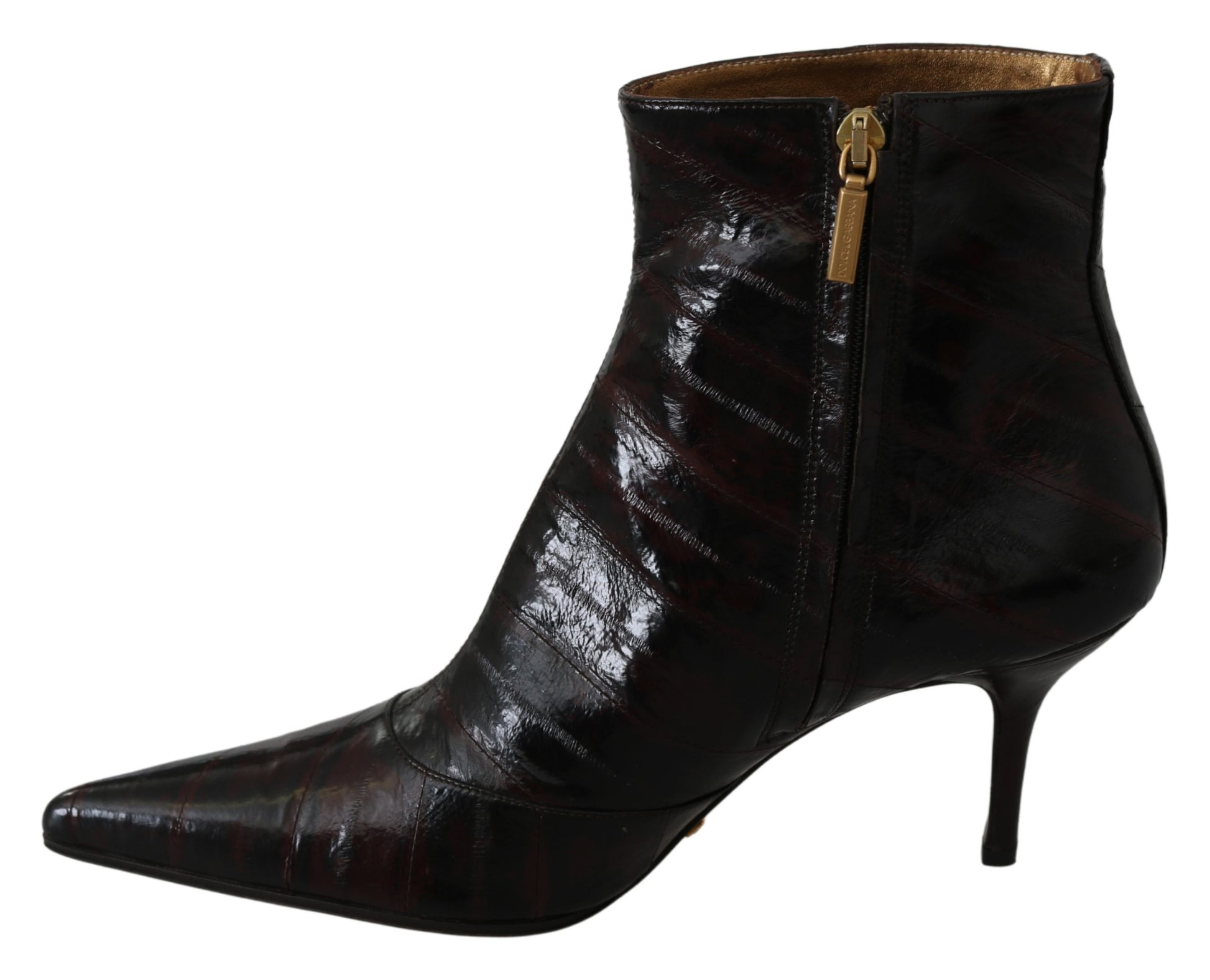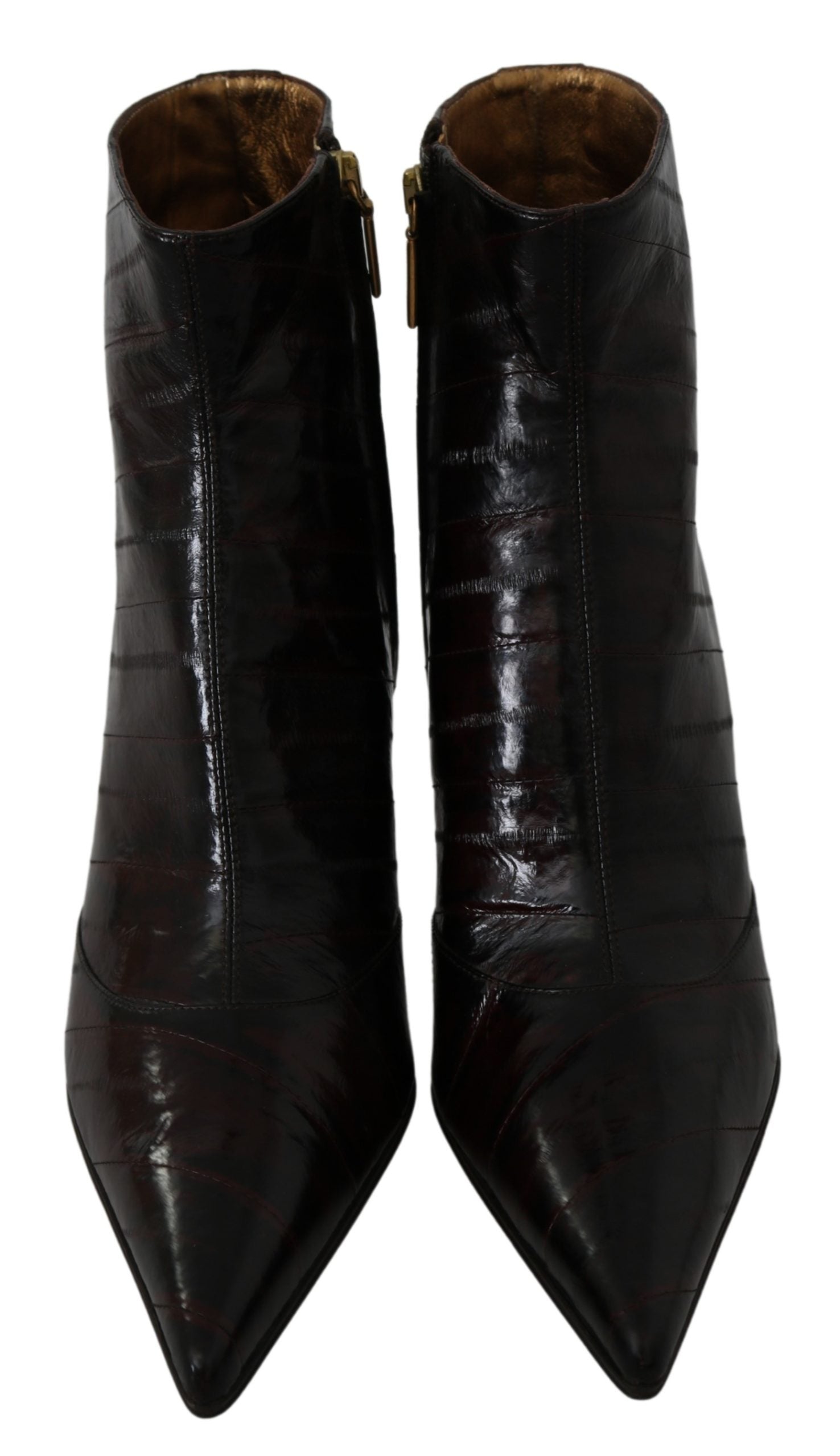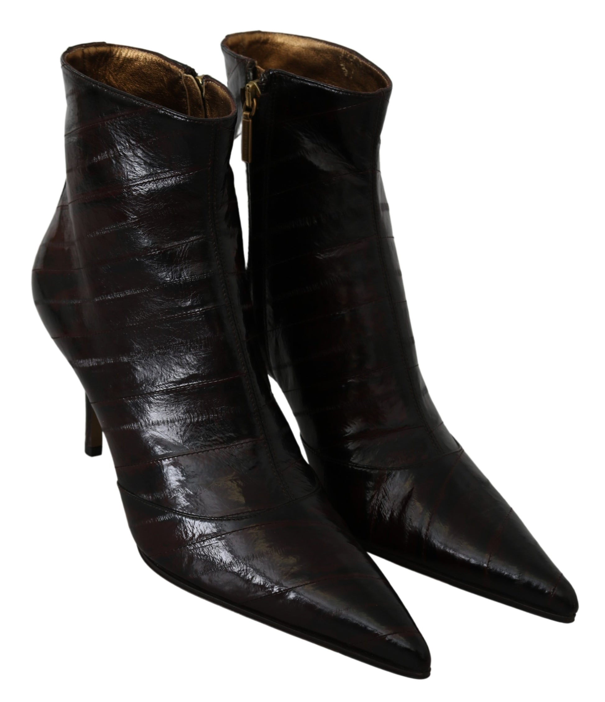 Bordeauxfarbene Aalleder-Stiefel mit Knöchelabsätzen