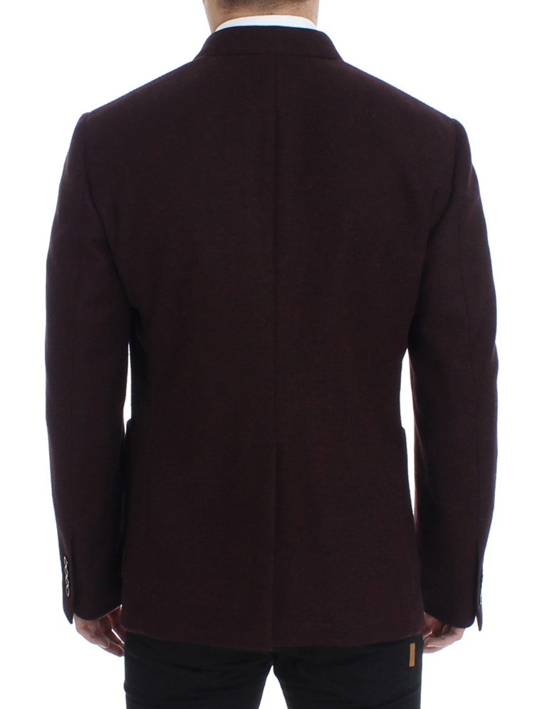 Bordeauxfarbener doppelreihiger Wollblazer