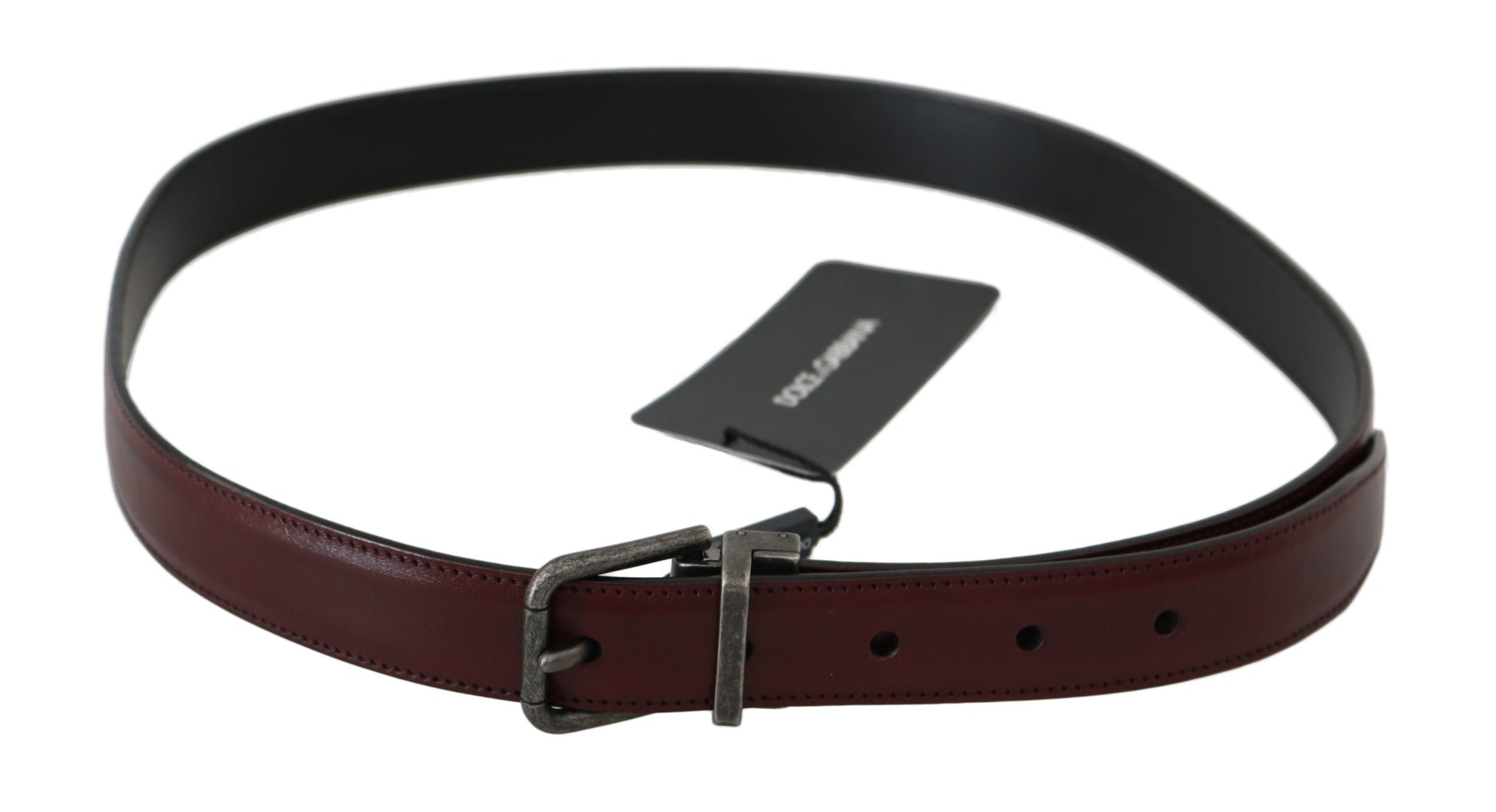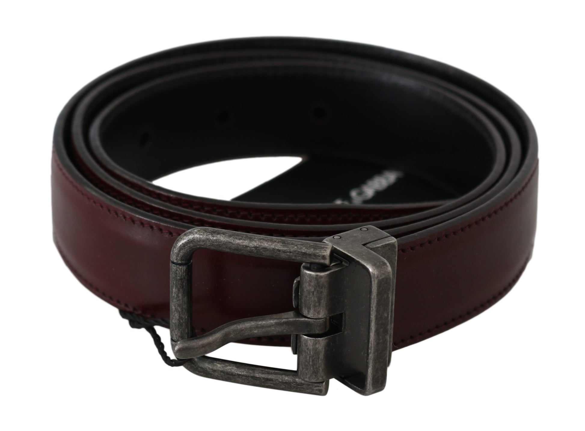 Bordeauxfarbener Leder-Gürtel mit gebürsteter Schnalle
