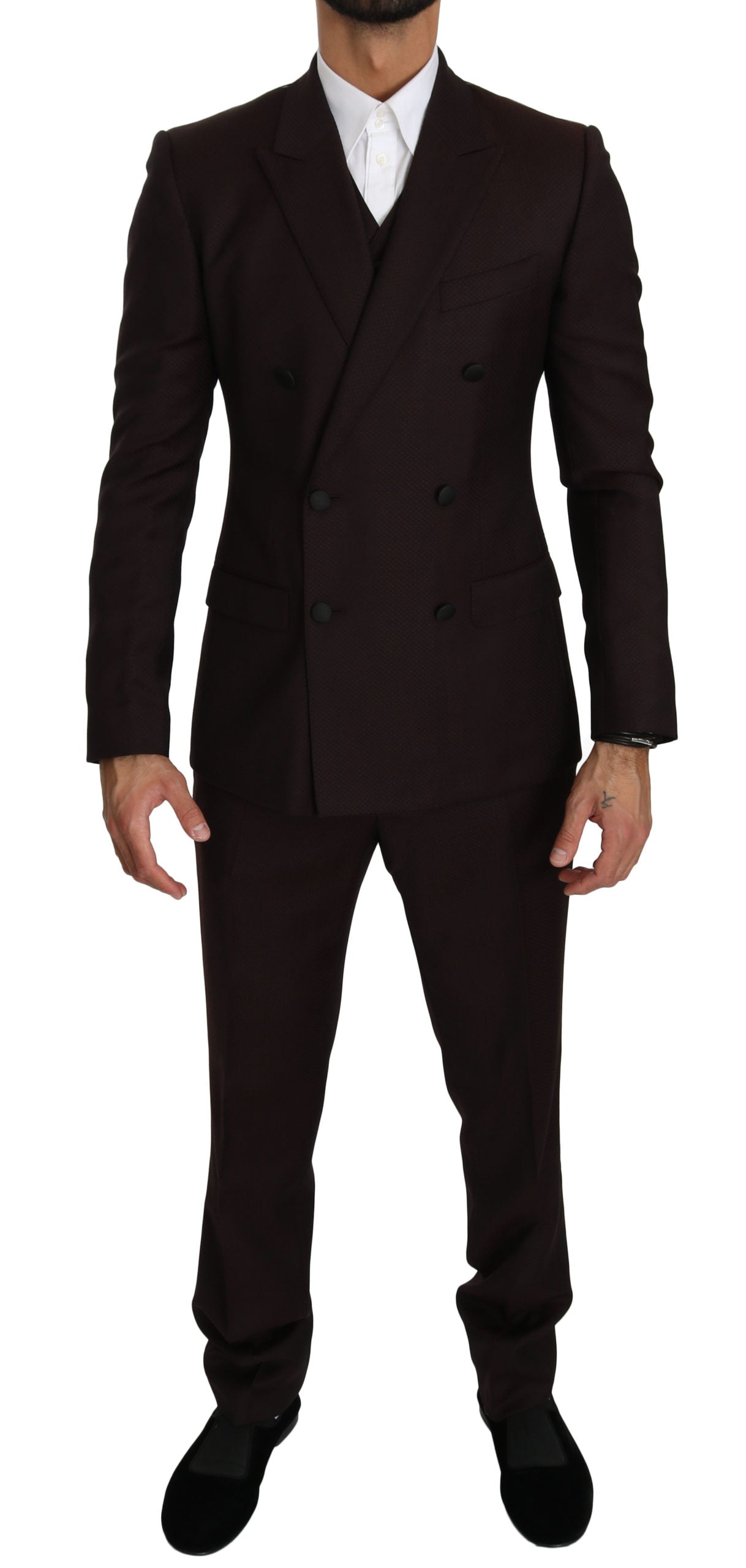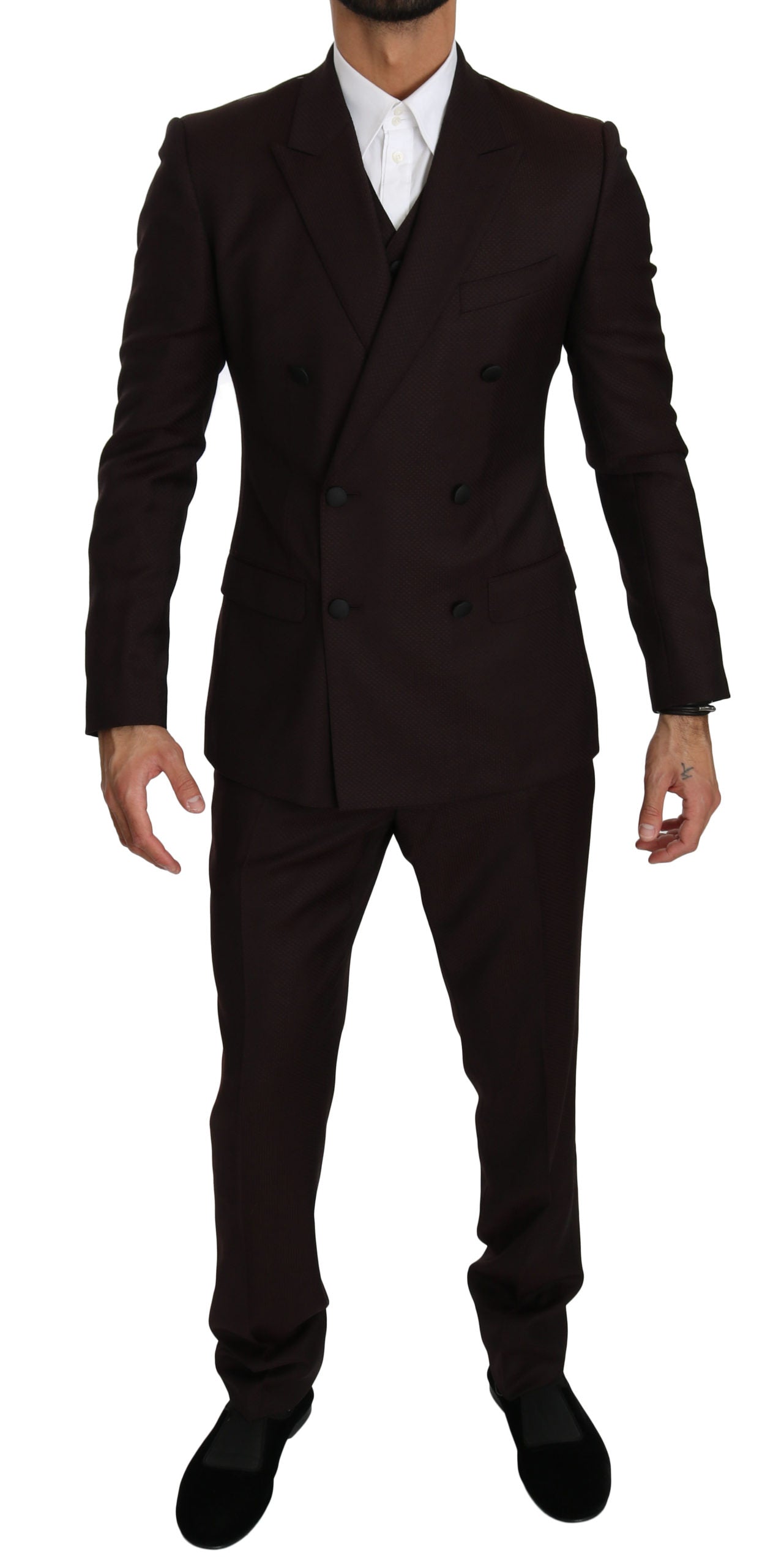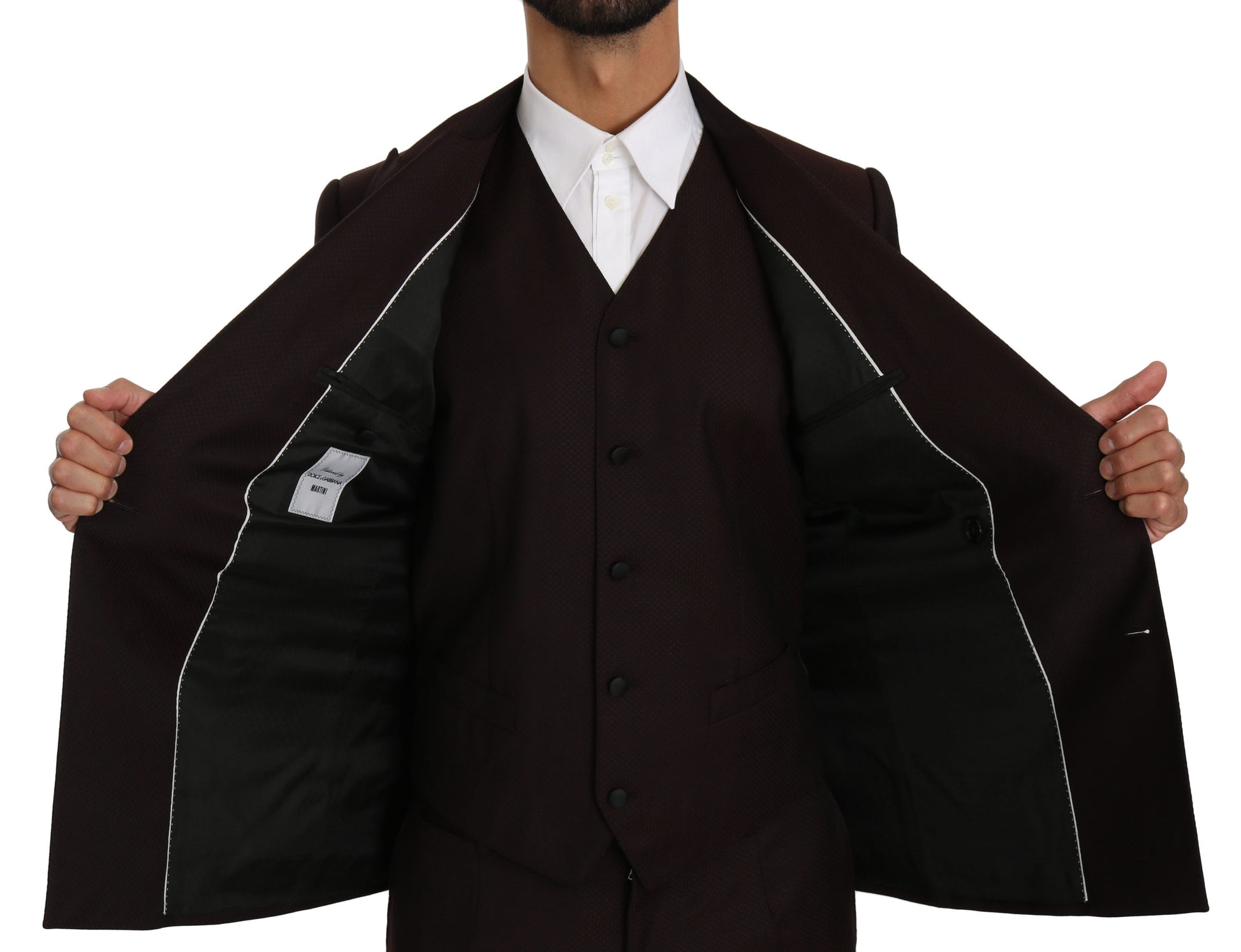 Bordeauxfarbener schmaler 3-teiliger MARTINI Anzug aus Wolle