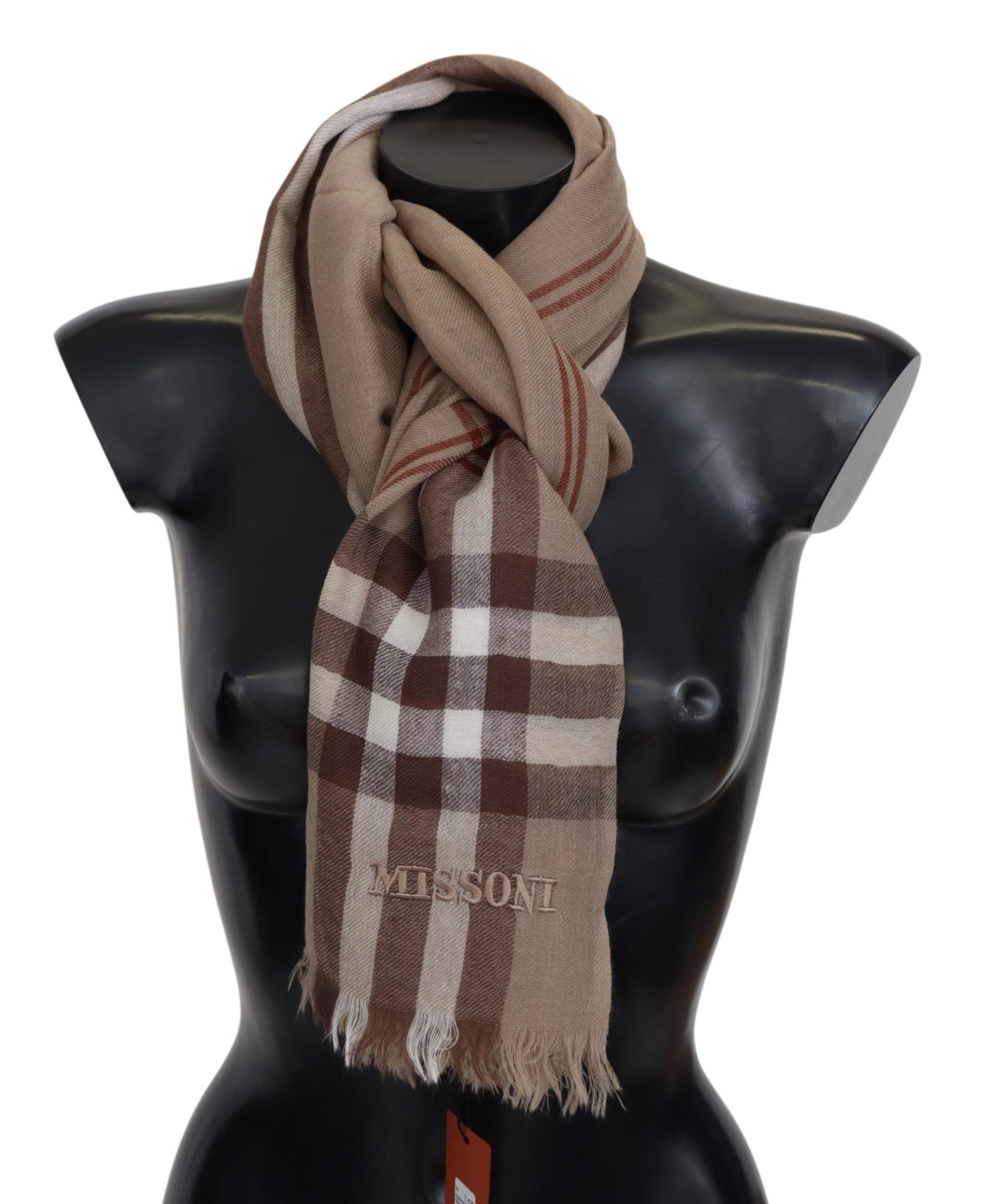 Wunderschöner, brandneuer, 100% authentischer Missoni Wollschal mit Karomuster und Markenlogostickerei.
