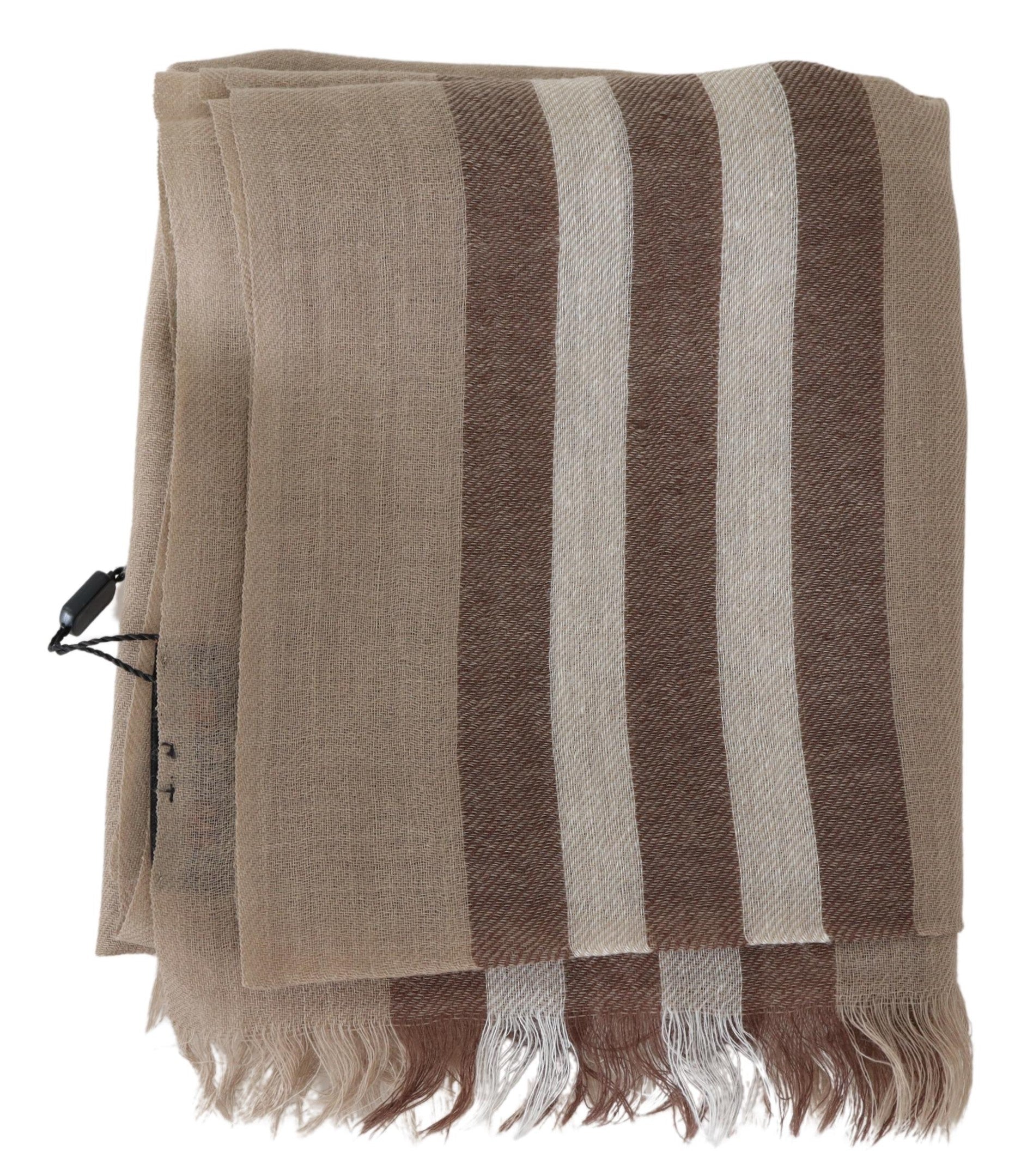 Braun karierter Wollstrick-Halswickel-Fransenschal