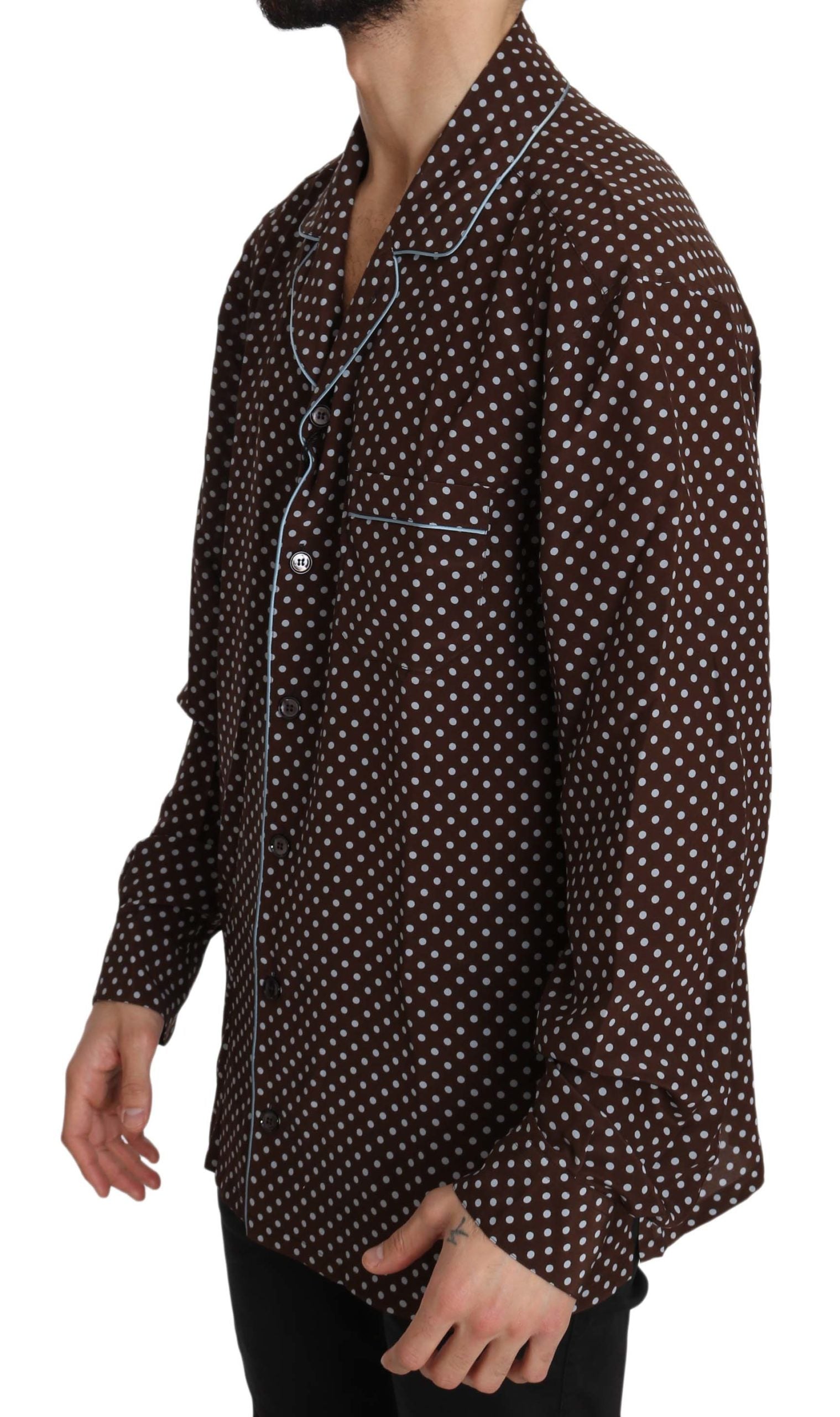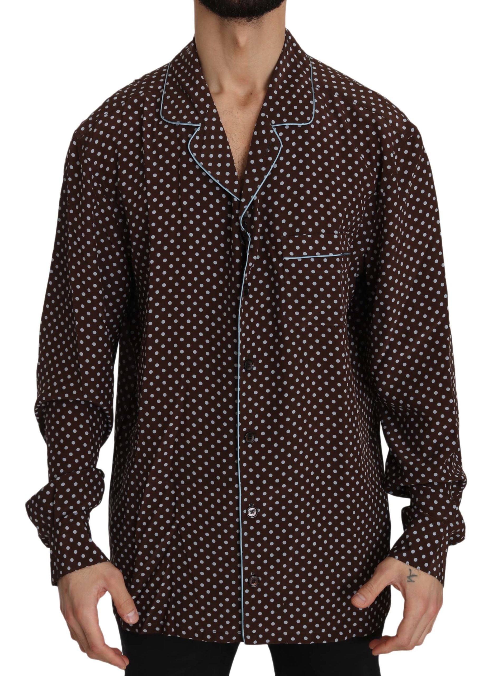 Braunblaues gepunktetes Seidenhemd