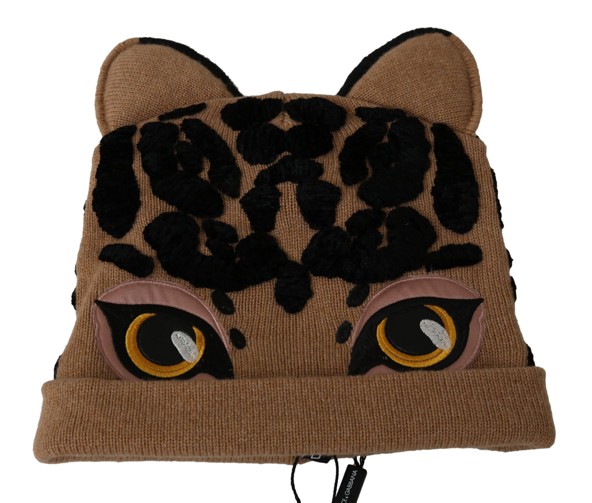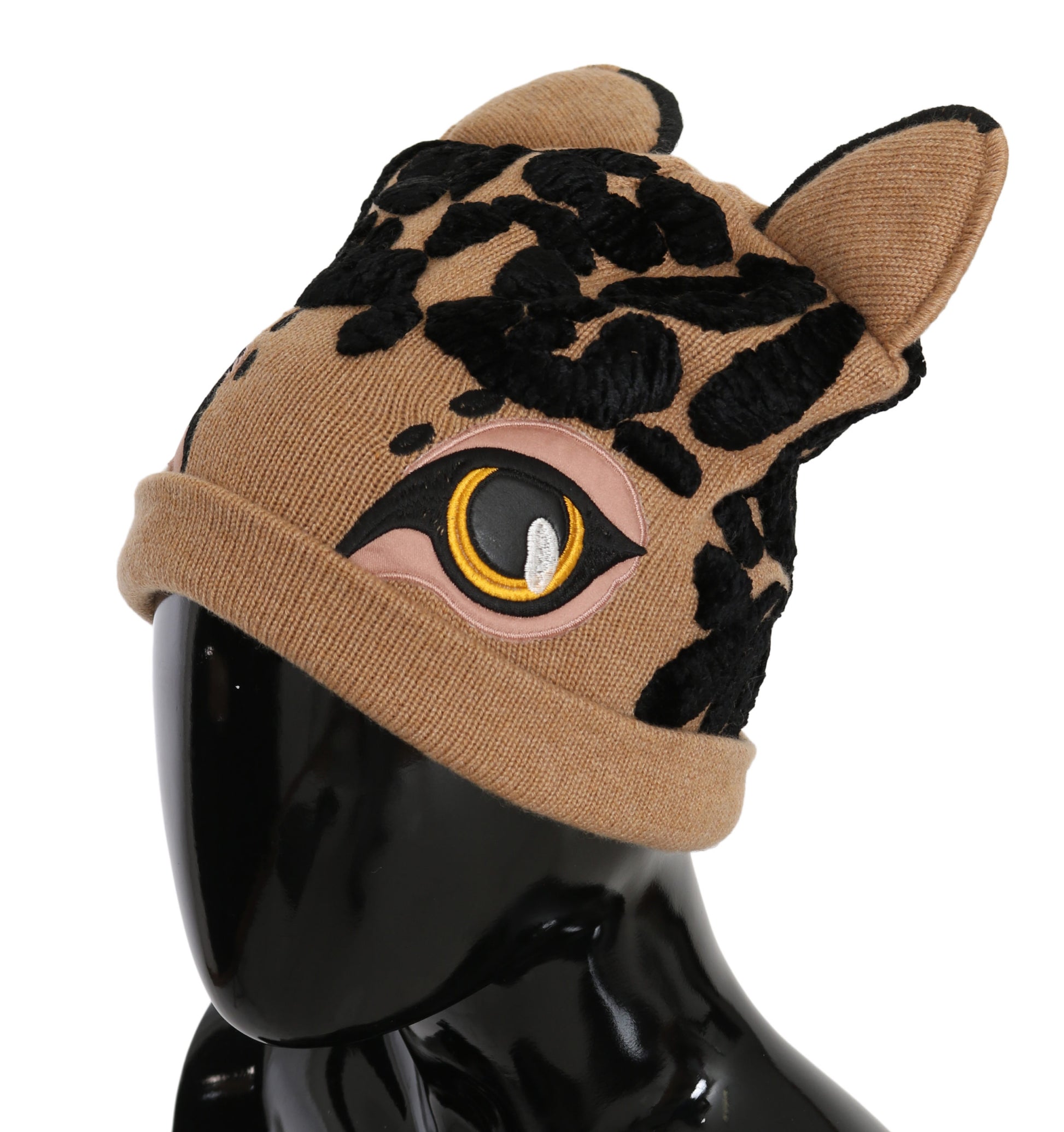 Braune Kaschmirstrickmütze mit Tiermotiv