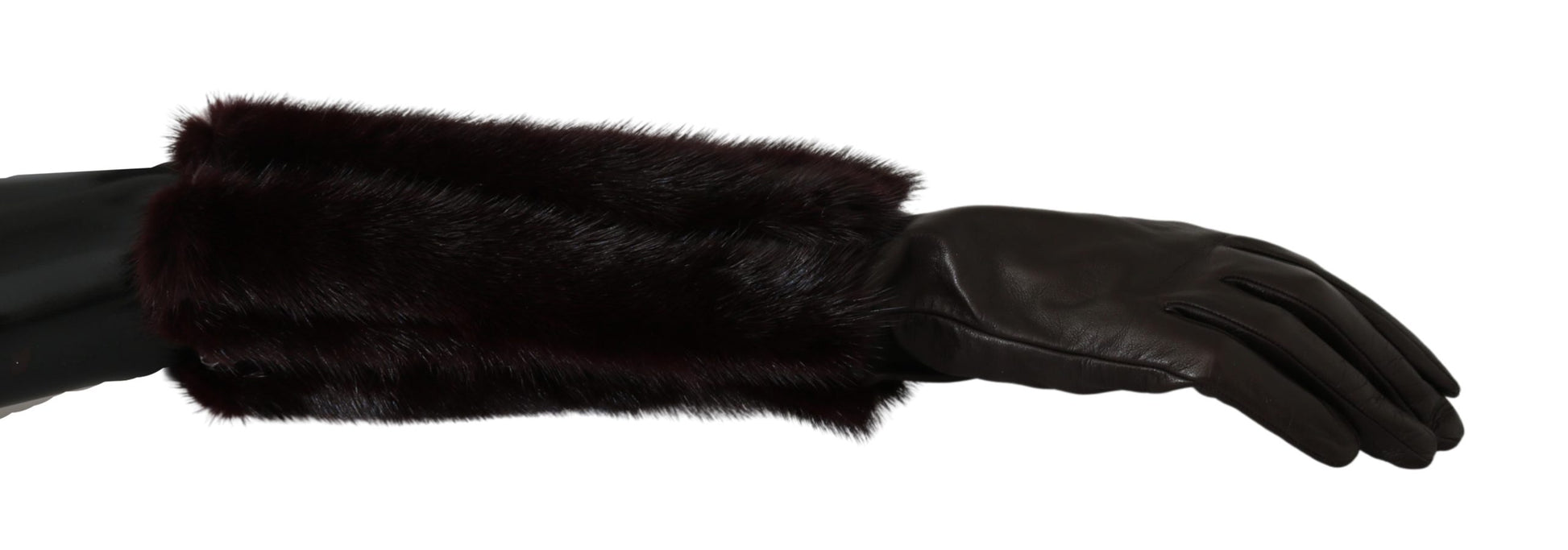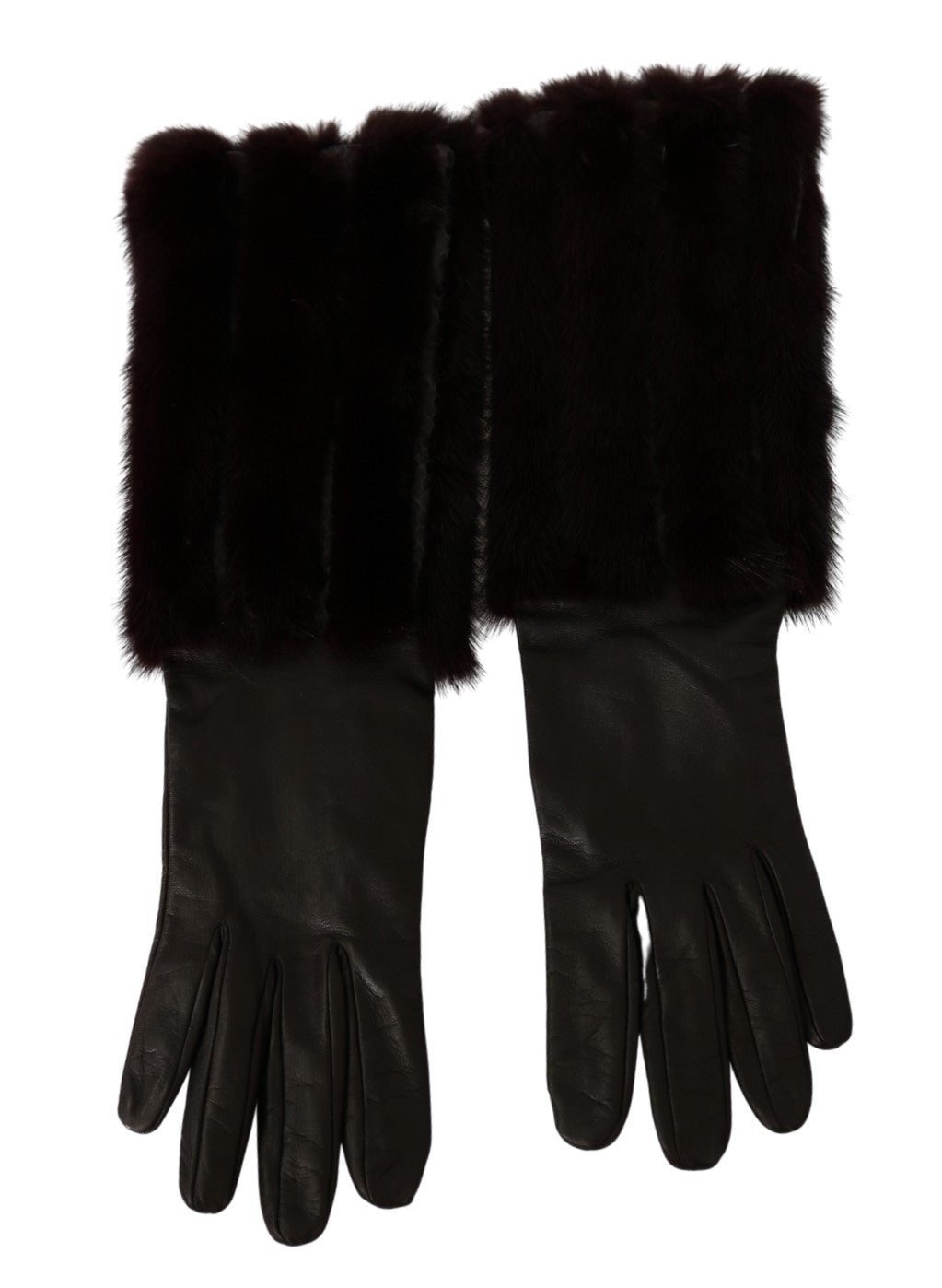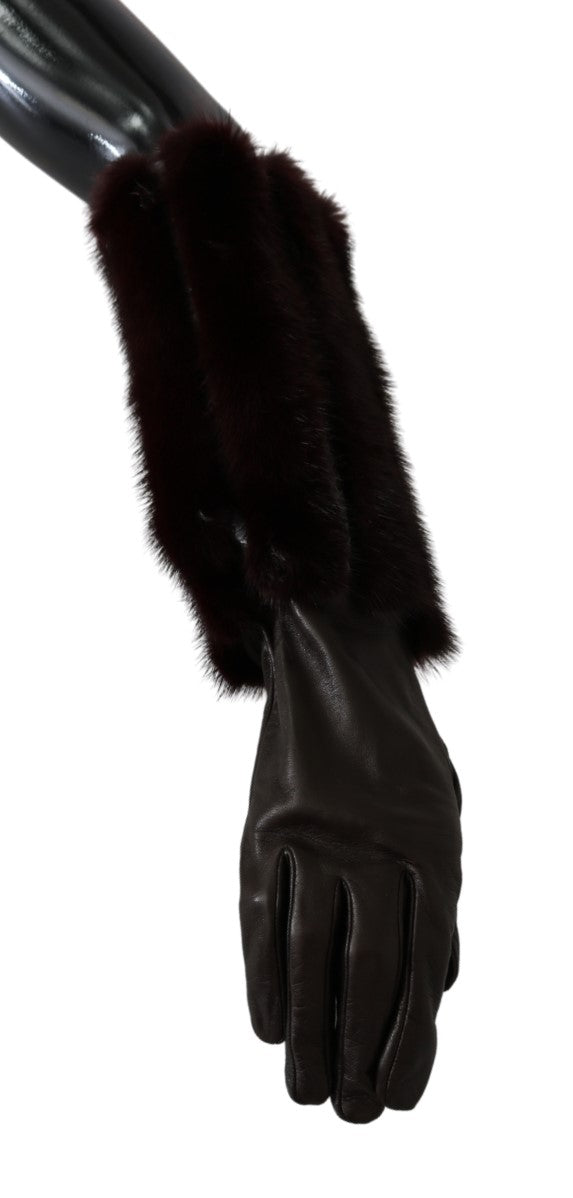 Braune Leder-Fell-Handschuhe mittlerer Armlänge