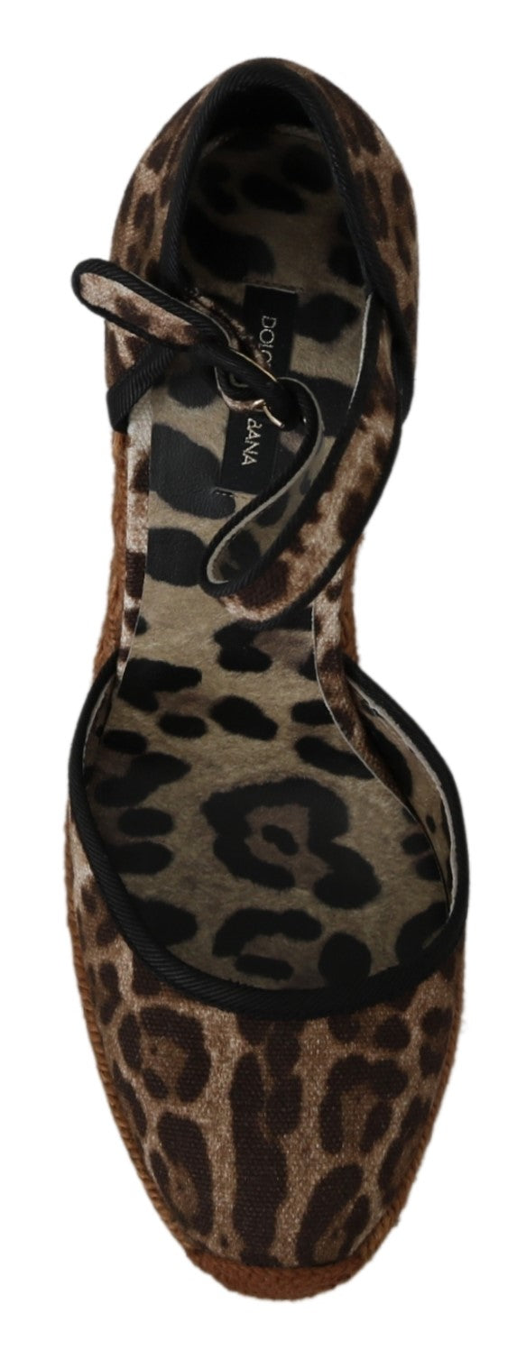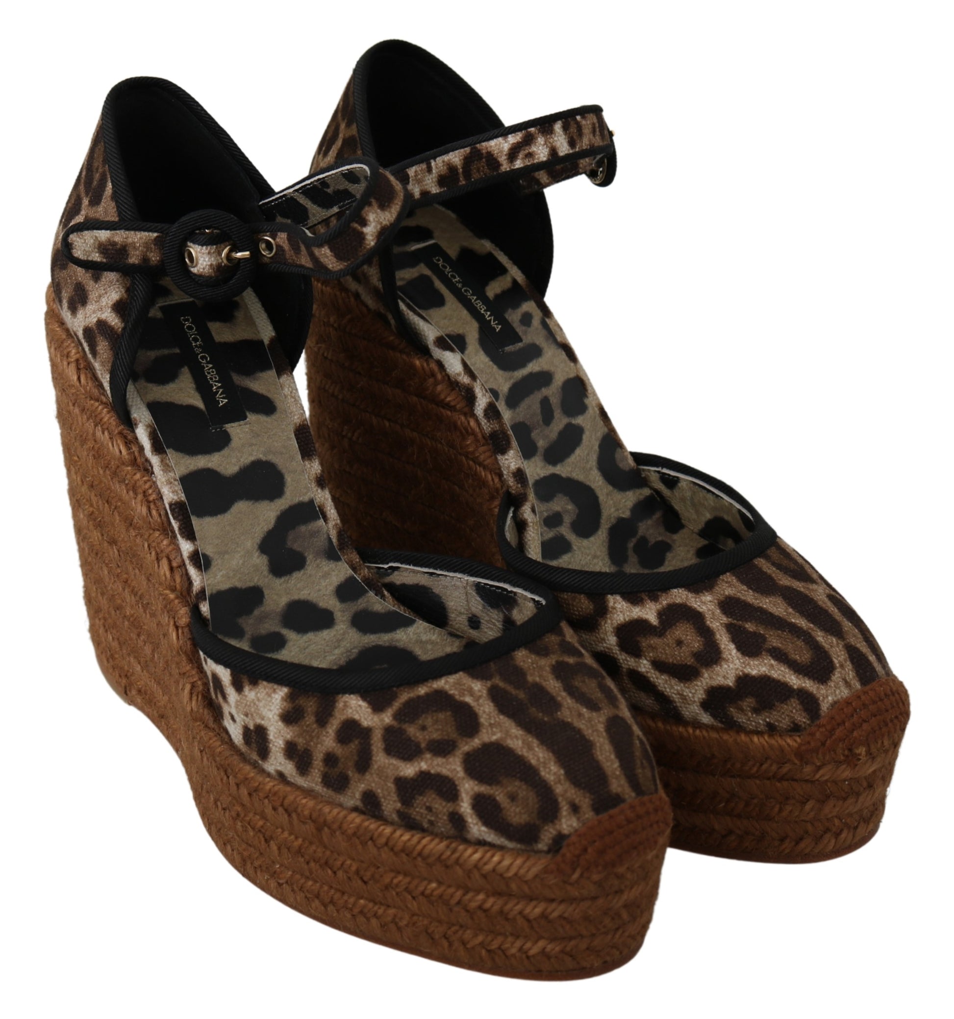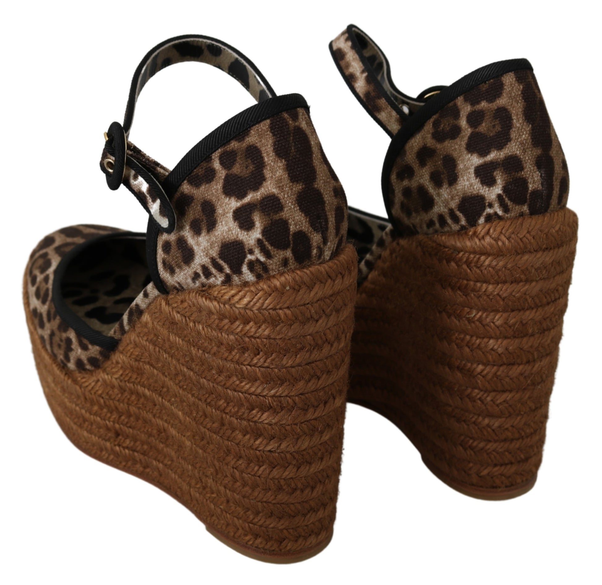 Braune Leoparden Keilsandalen mit Knöchelriemen Schuhe