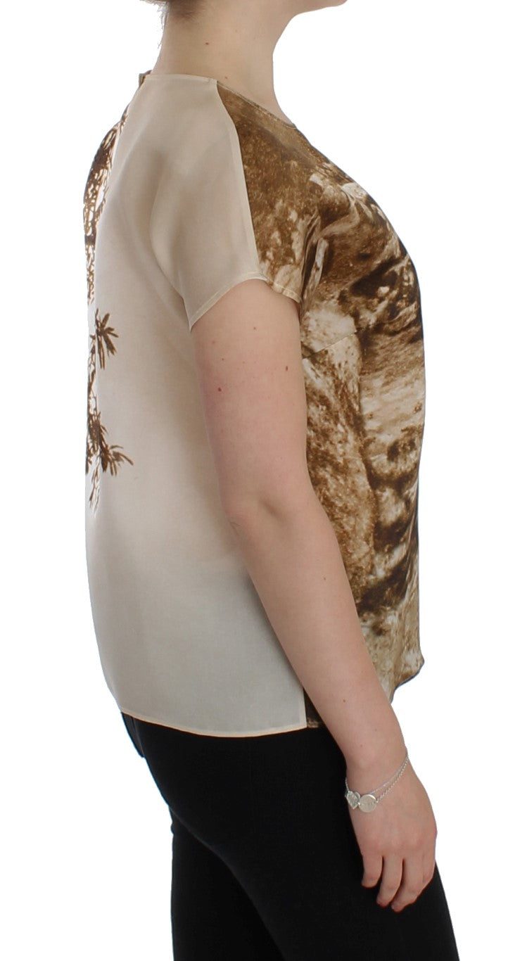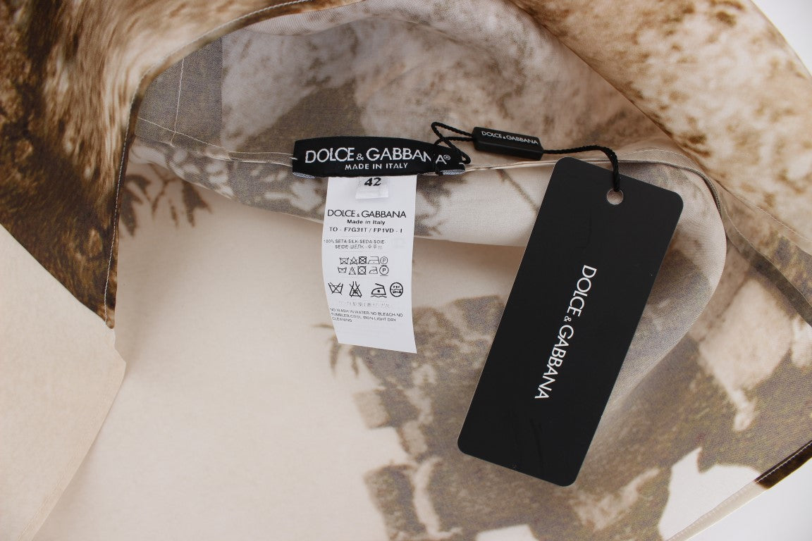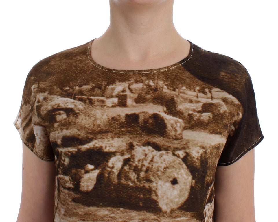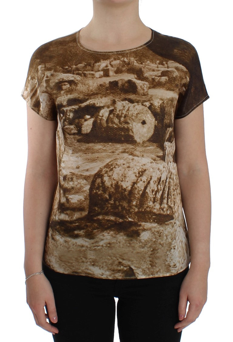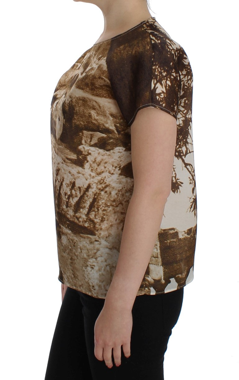 Wunderschöne brandneue, 100% authentische DOLCE & GABBANA braune und beige Taormina Druck kurzärmelige Bluse mit Rundhalsausschnitt. Dieser Artikel stammt aus der exklusiven MainLine Dolce & Gabbana Kollektion.
