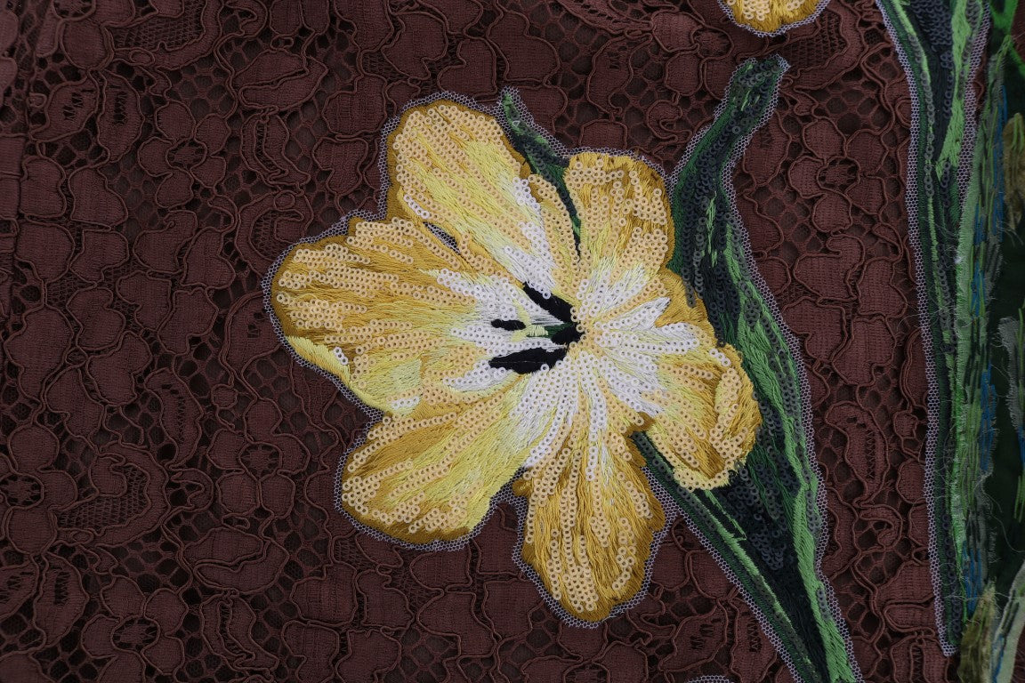 Farbe: Braun mit mehrfarbiger floraler Stickerei