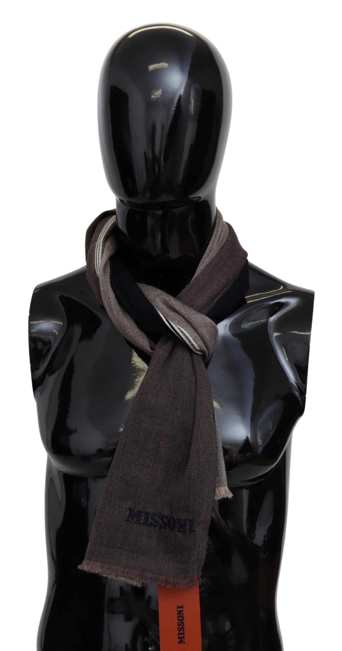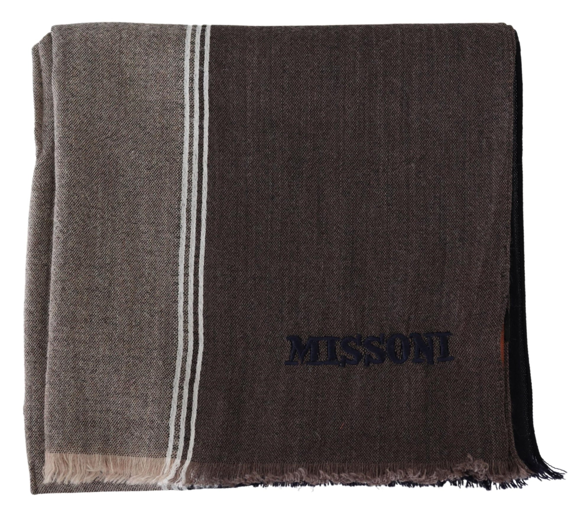 Wunderschöner, brandneuer, 100% authentischer Missoni Wollschal mit Streifenmuster und Markenlogostickerei.