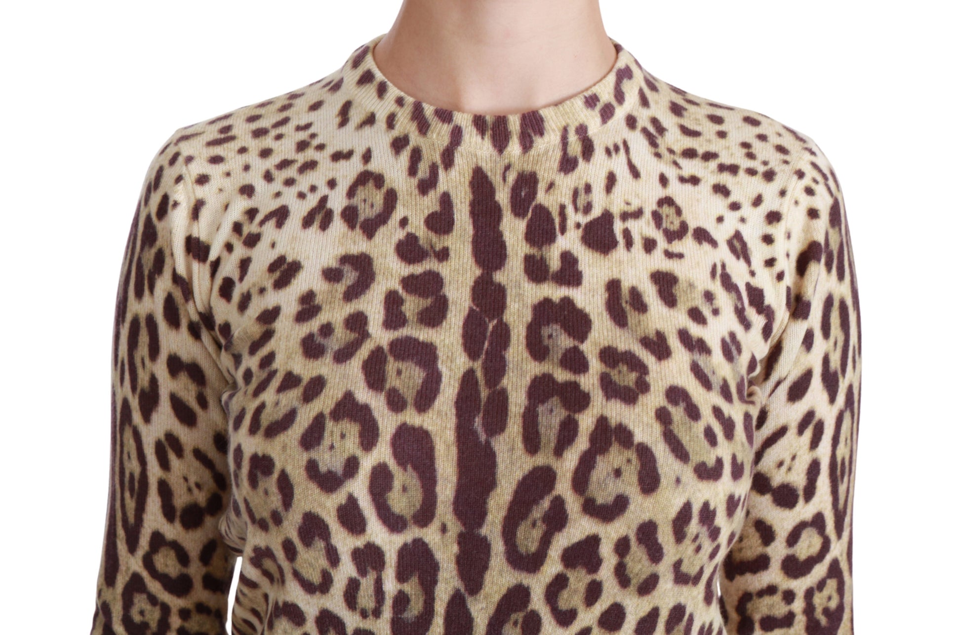 Brauner Leoparden-Langarmpullover Kaschmir-Oberteil