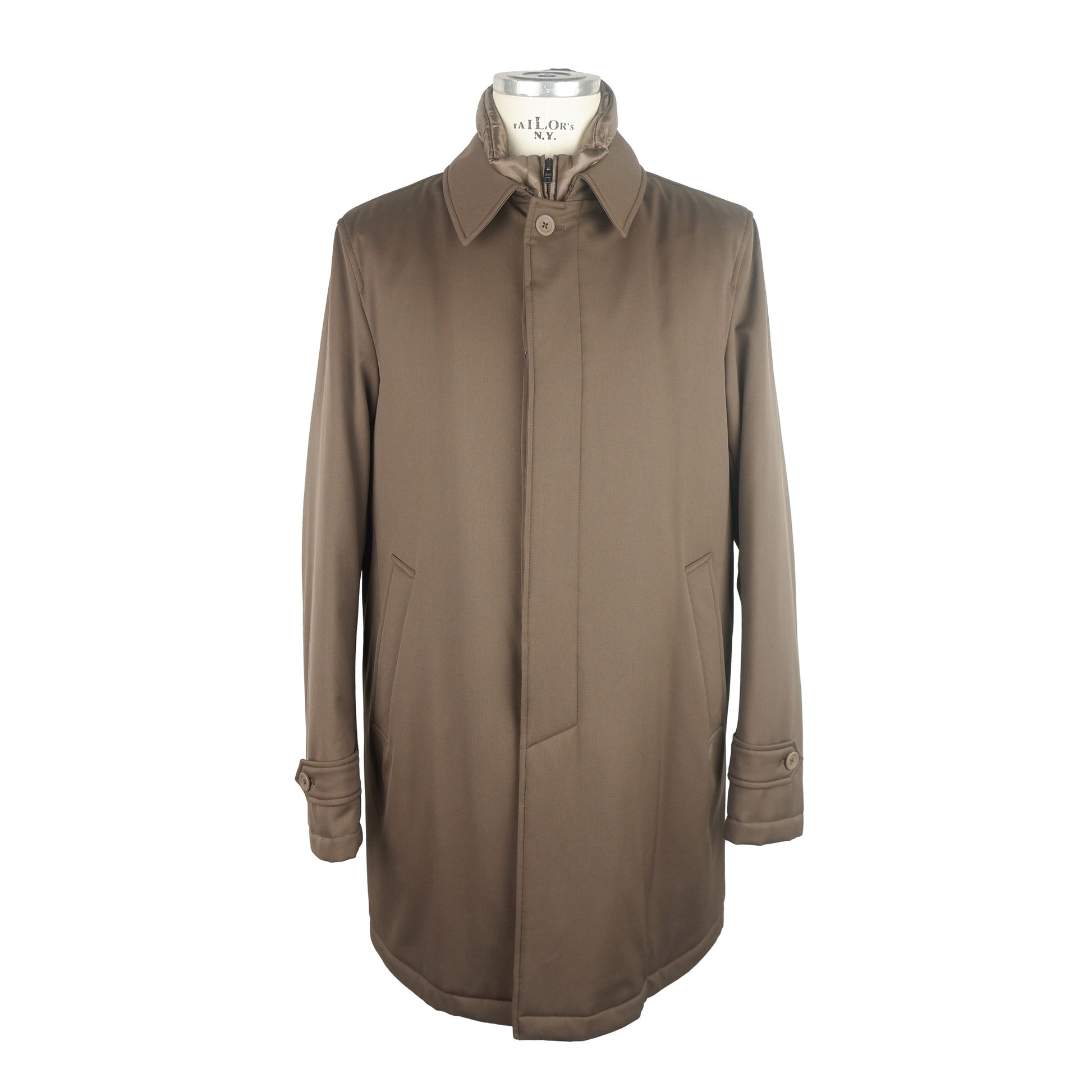 Brauner Trenchcoat aus Wolle mit Knopfverschluss