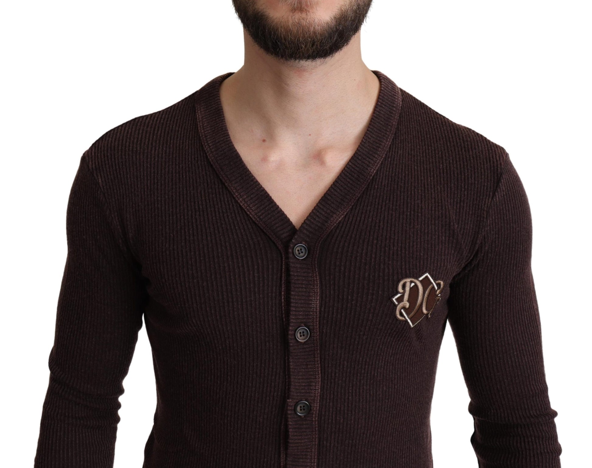 Brauner Woll-Logo-Knopf-Strickpullover