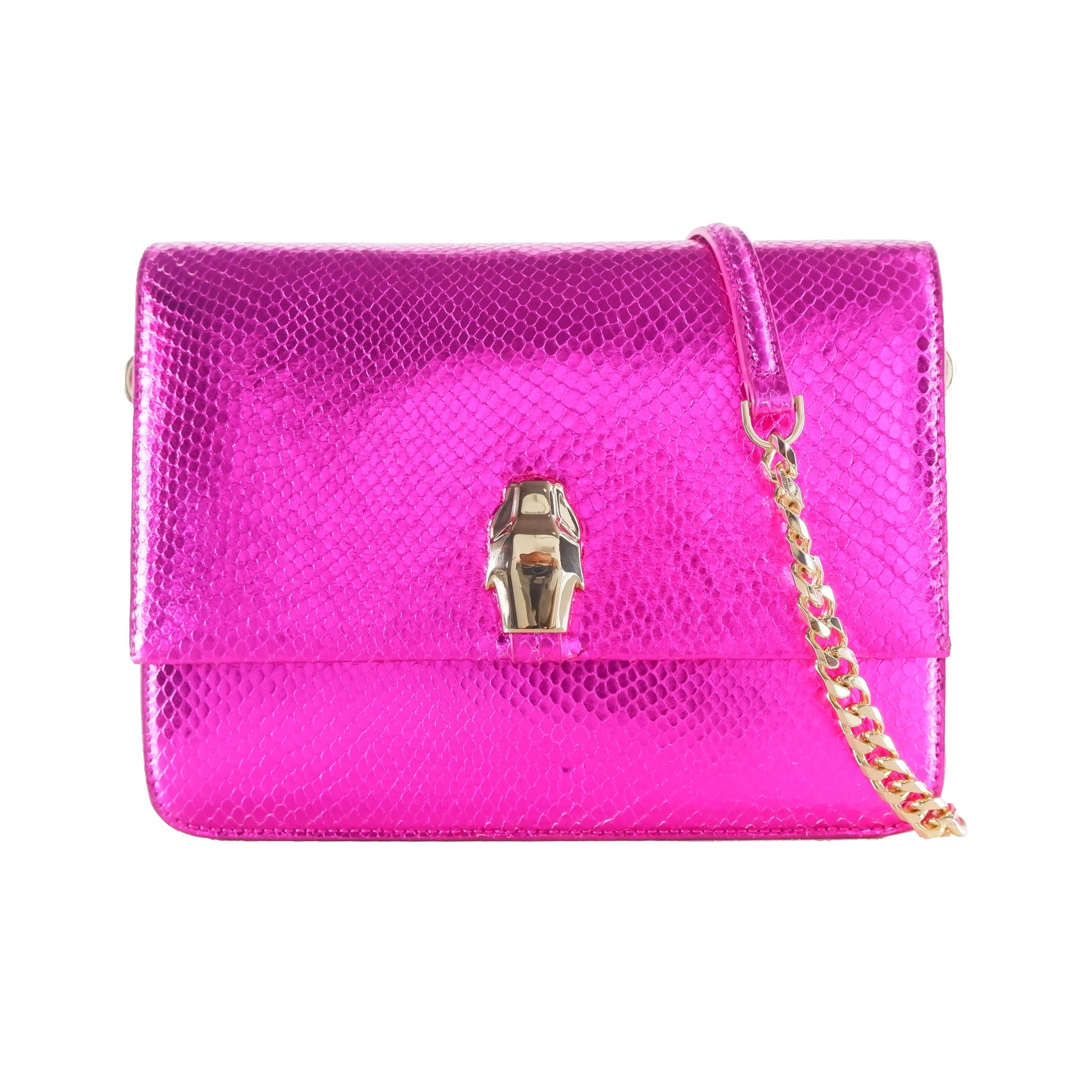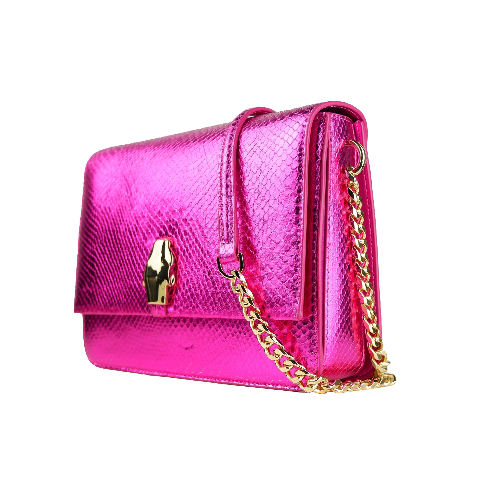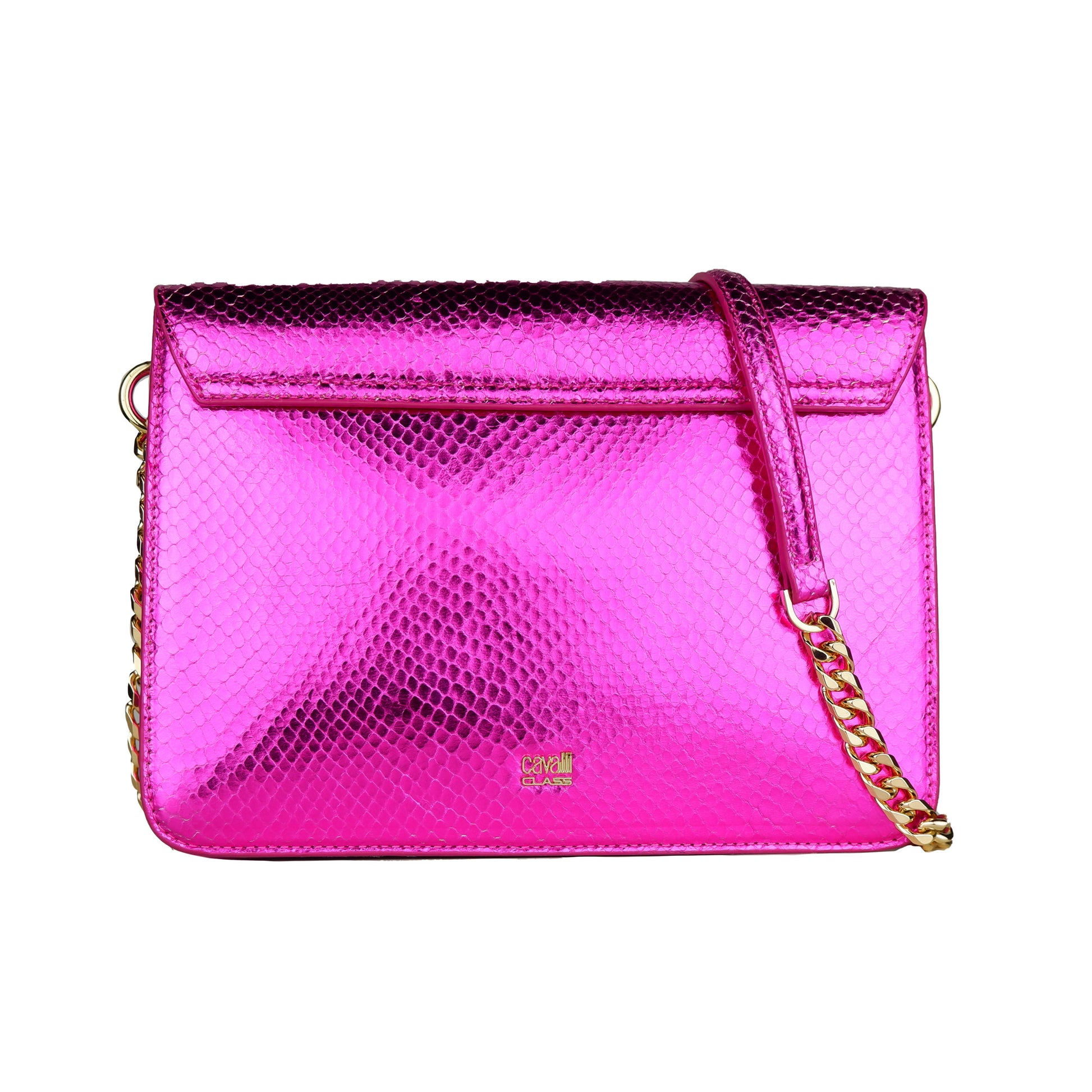 Cavalli Class Schultertasche, rosa Farbe mit irisierendem Effekt, 3 Innenfächer, Magnetverschluss vorne, Maße 24 x 17 x 6, Staubbeutel inklusive.