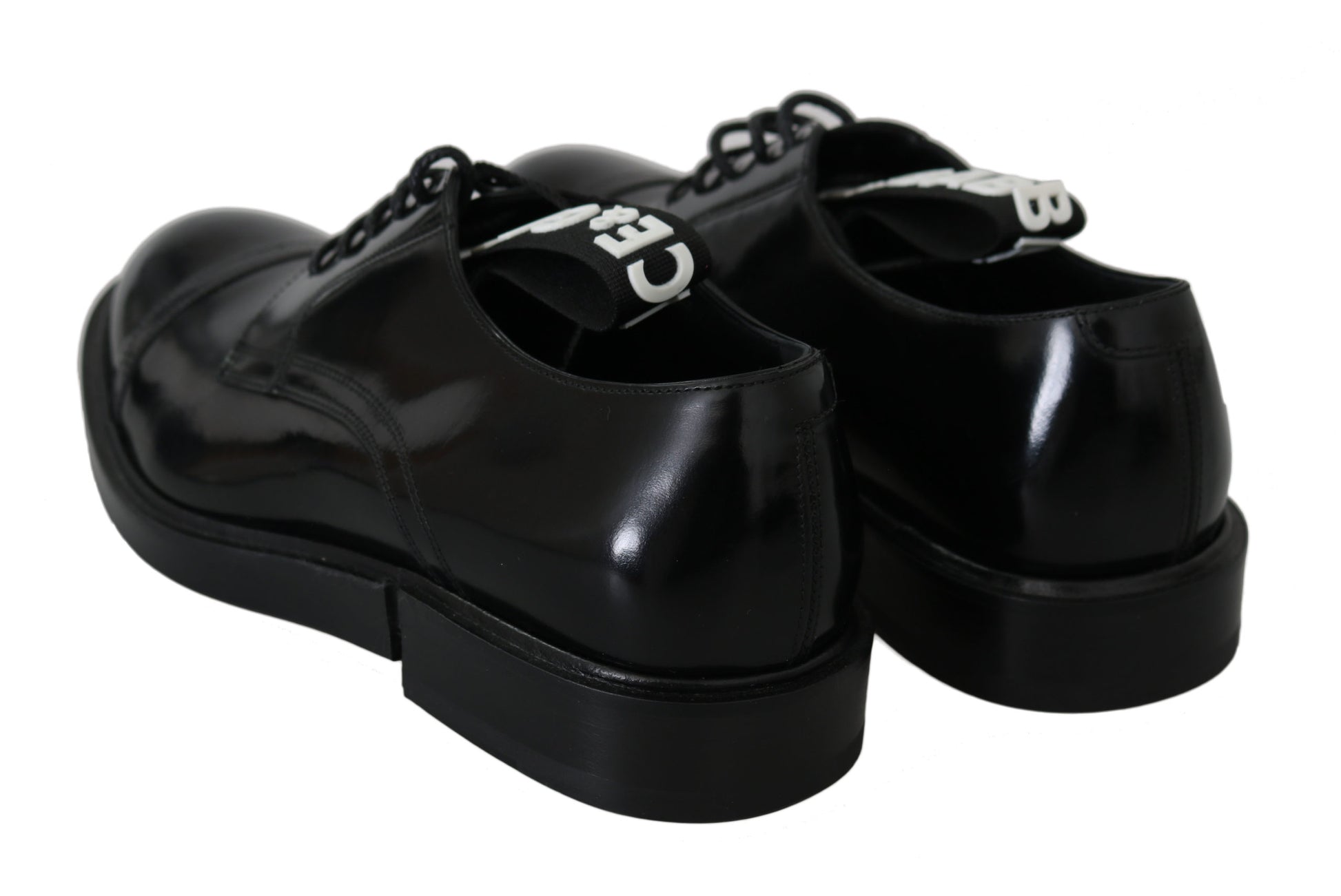 Derby Schwarz Kalbsleder Branded Strap Formelle Schuhe