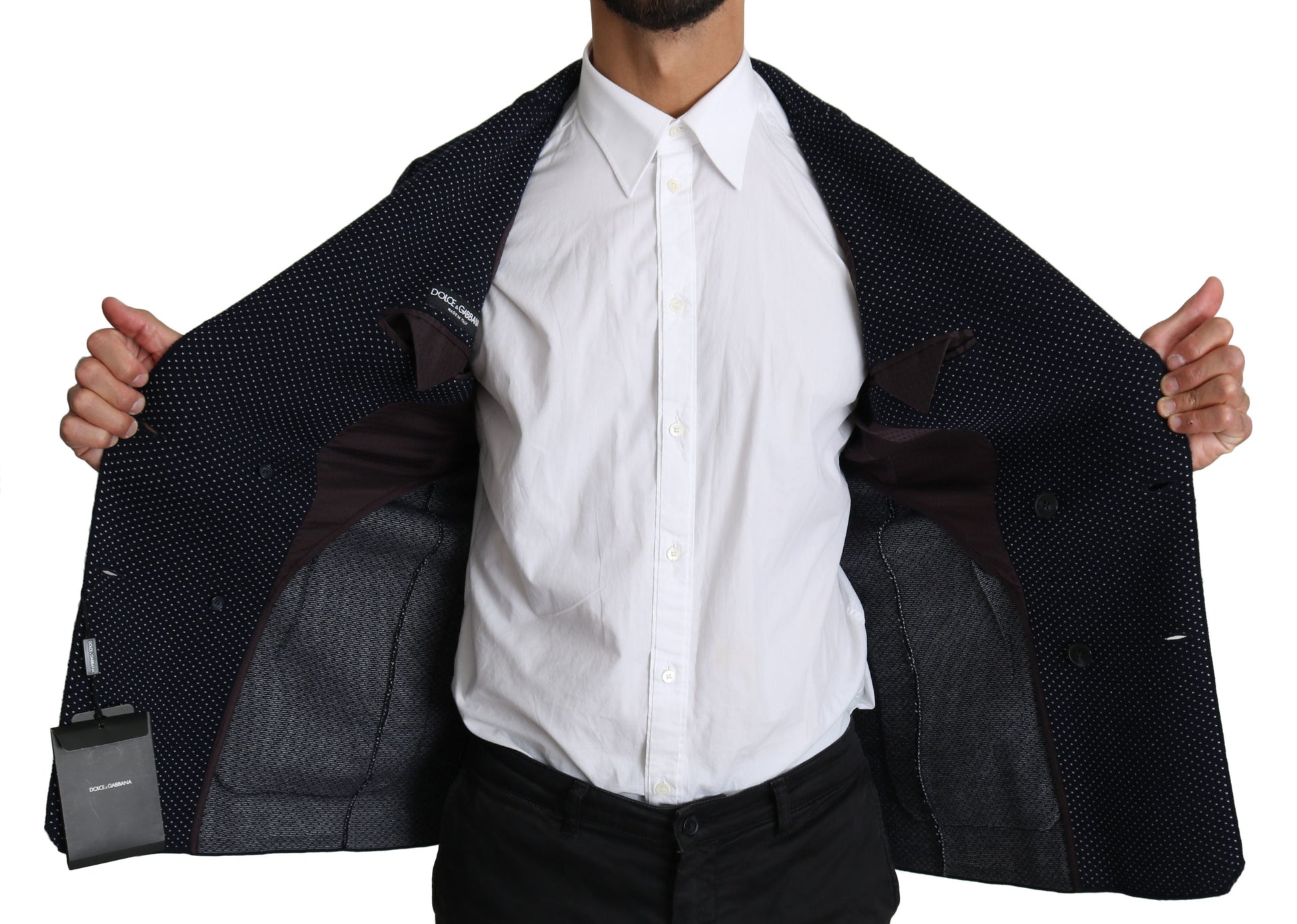 Dunkelblauer gepunkteter zweireihiger Mantel Blazer