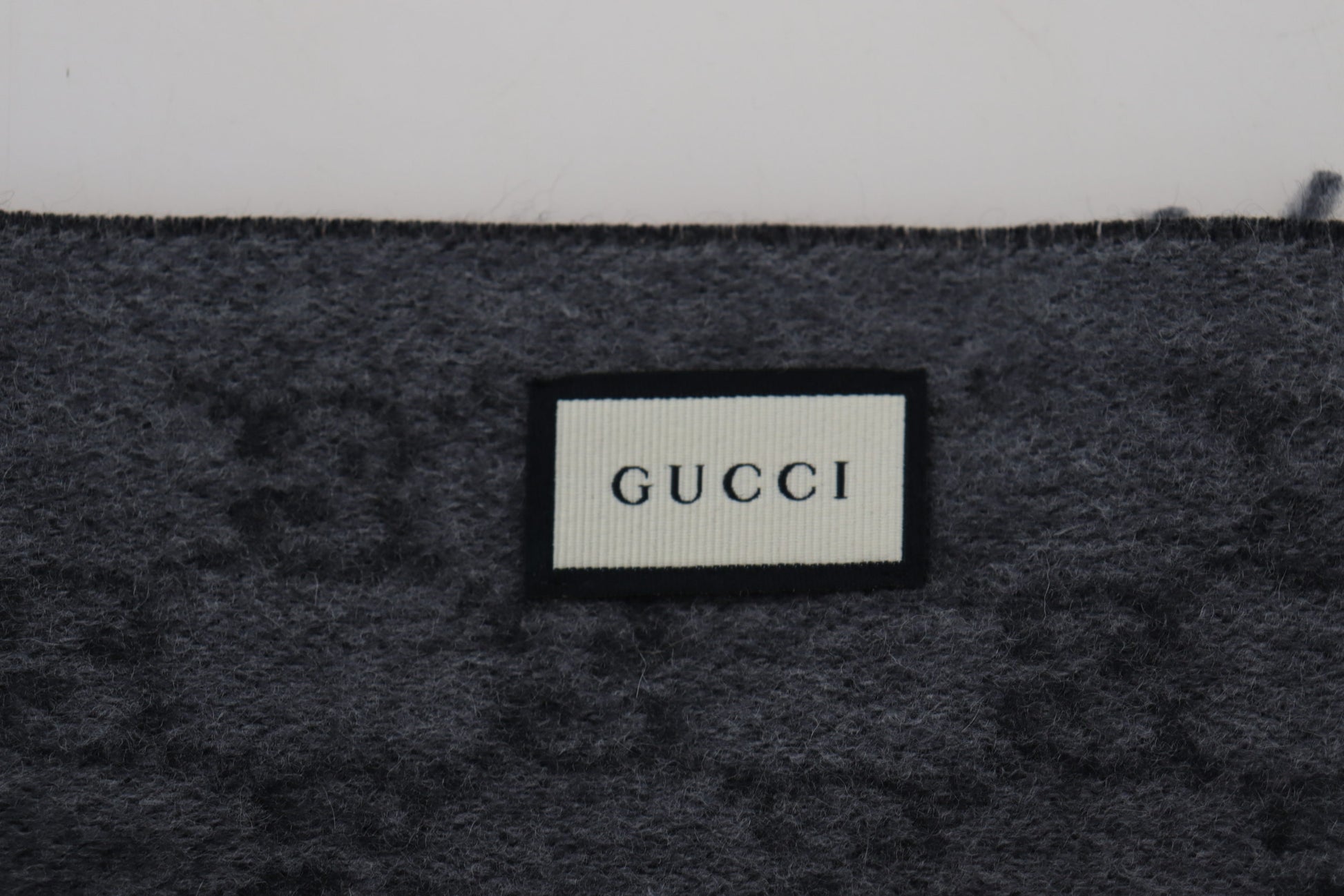 Dunkelgrauer Schal mit GG-Logo aus Kaschmir und Wolle