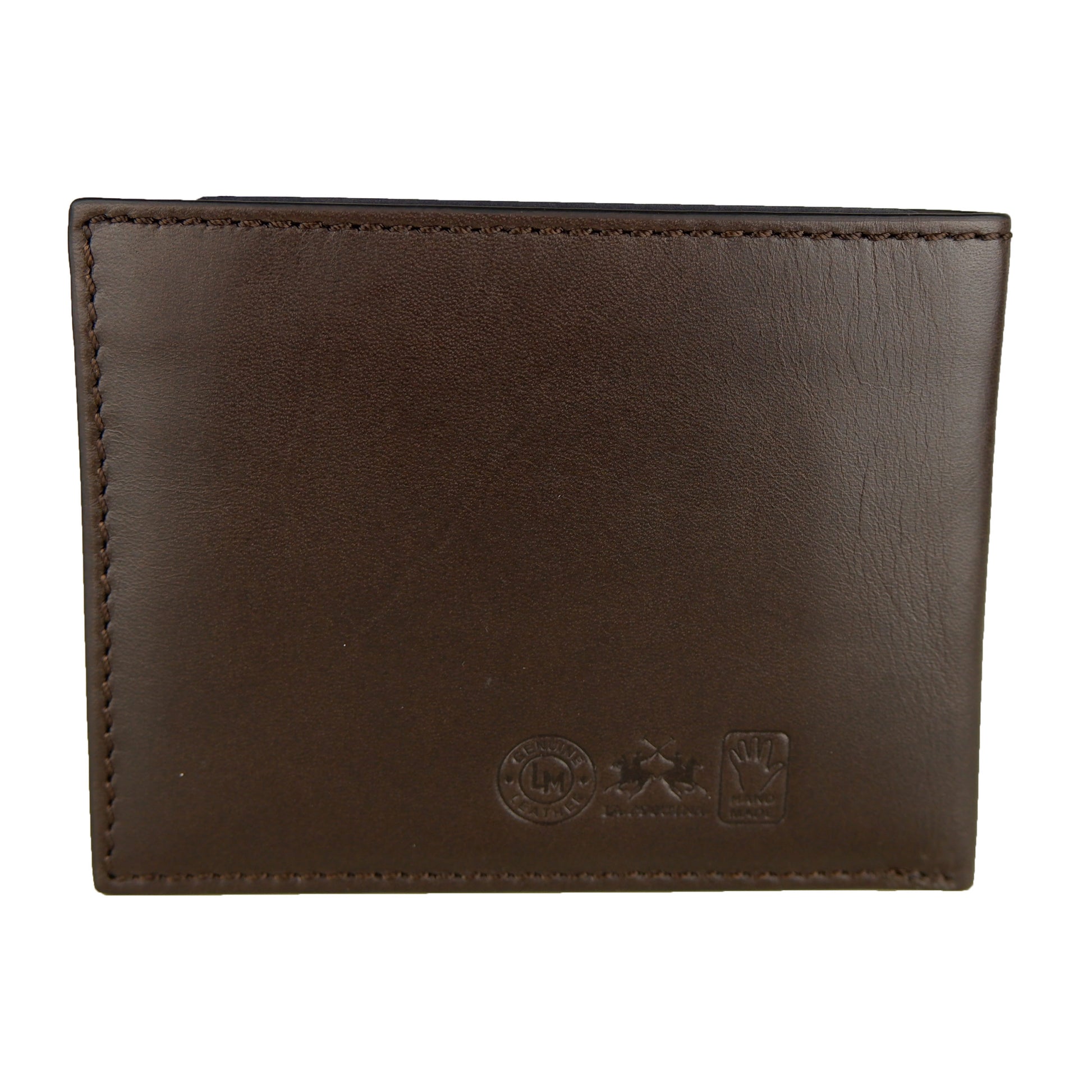 La Martina Geldbörse, dunkelbraune Farbe, Markenlogo auf beiden Seiten, Münz- und Kartenfach innen. Größe cms: 12×9. Hergestellt in Italien