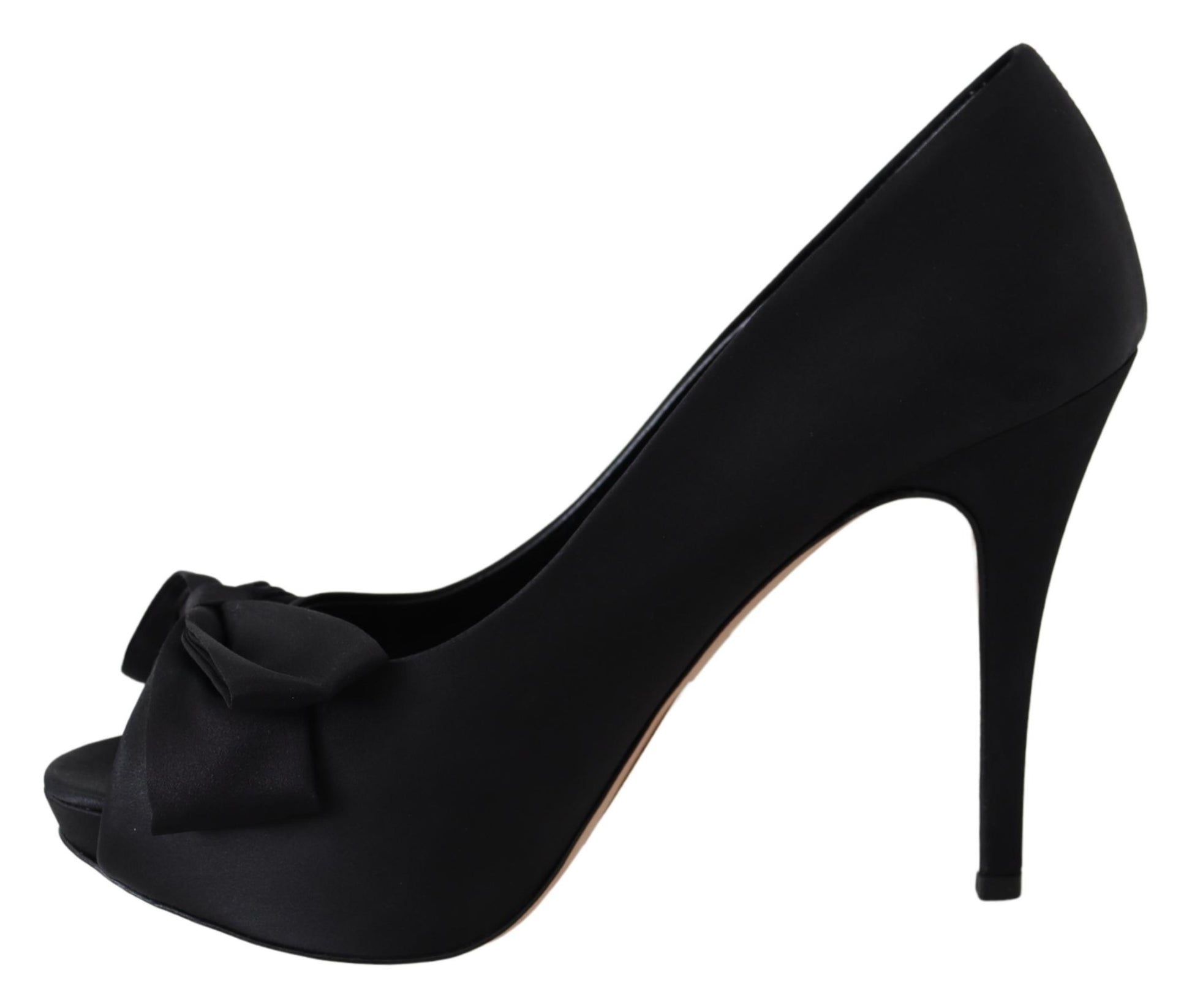 Schwarze Seiden Pumps Offene Zehen Heels Schuhe