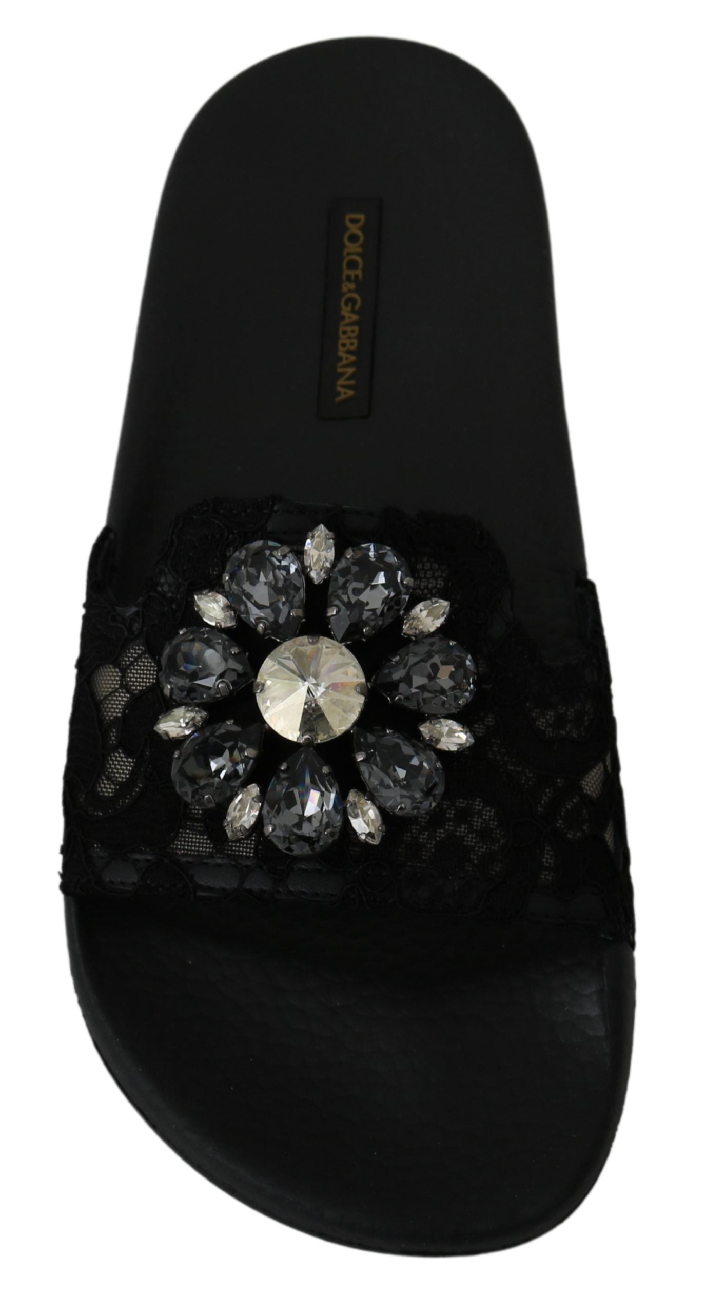 Schwarze Spitze Kristall Sandalen Rutschen Strand Schuhe
